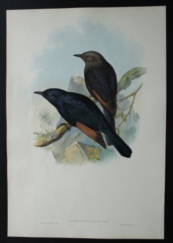 John Gould - Original lithograph of Tristram's Kingfisher 1849-83. This original lithograph of Tristram's Amydrus aka Tristram's Kingfisher (Amydrus tristrami) is from John Gould's, Birds of Asia issued in 35 parts between 1849 and 1883, the last three being issued after Gould's death in 1881 by Bowdler-Sharpe.The print was drawn and lithographed by John Gould and HC Richter.