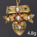 ANTIQUE MULTI GEM SET BOW PENDANT/BROOCH,
