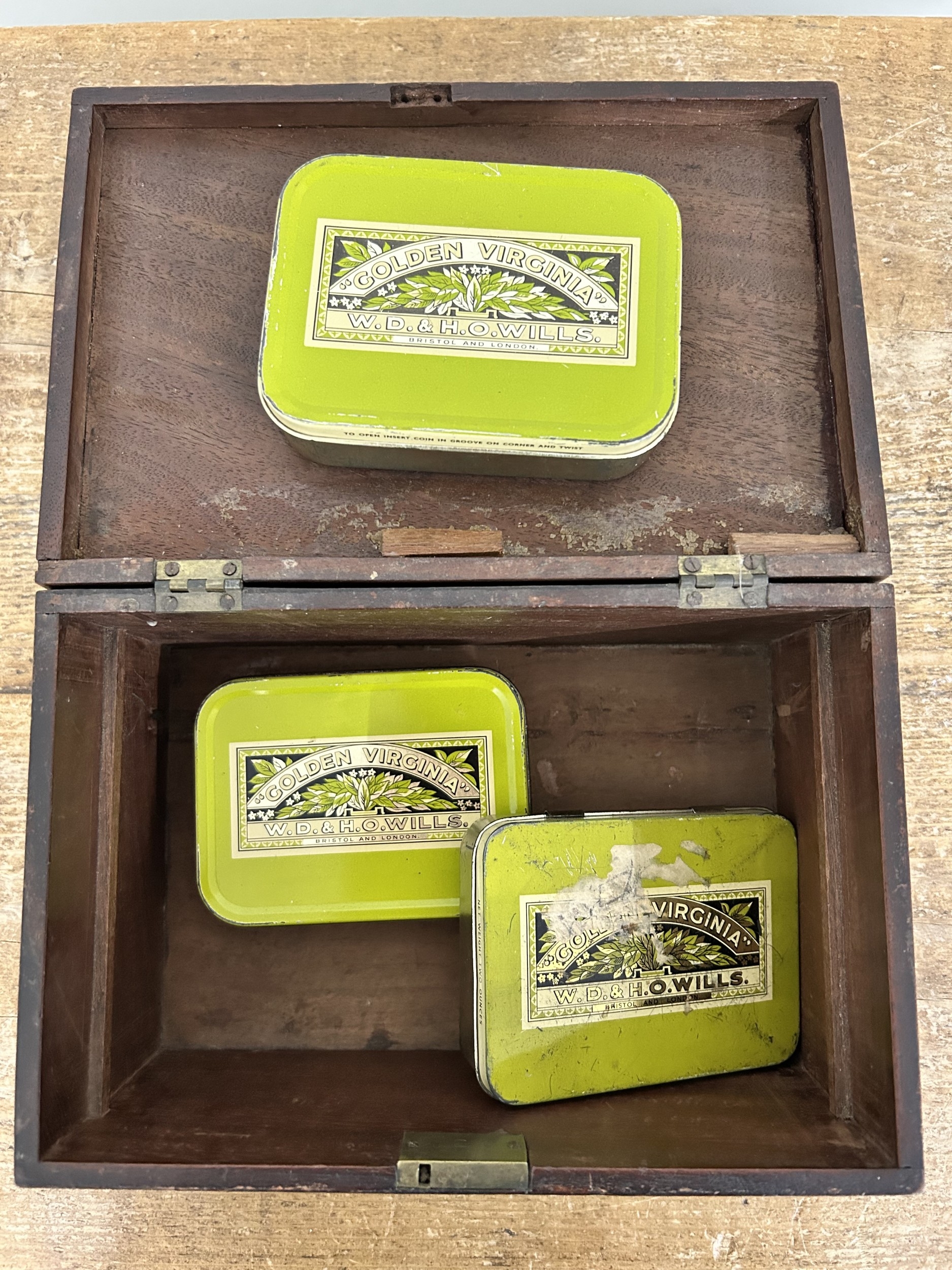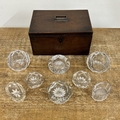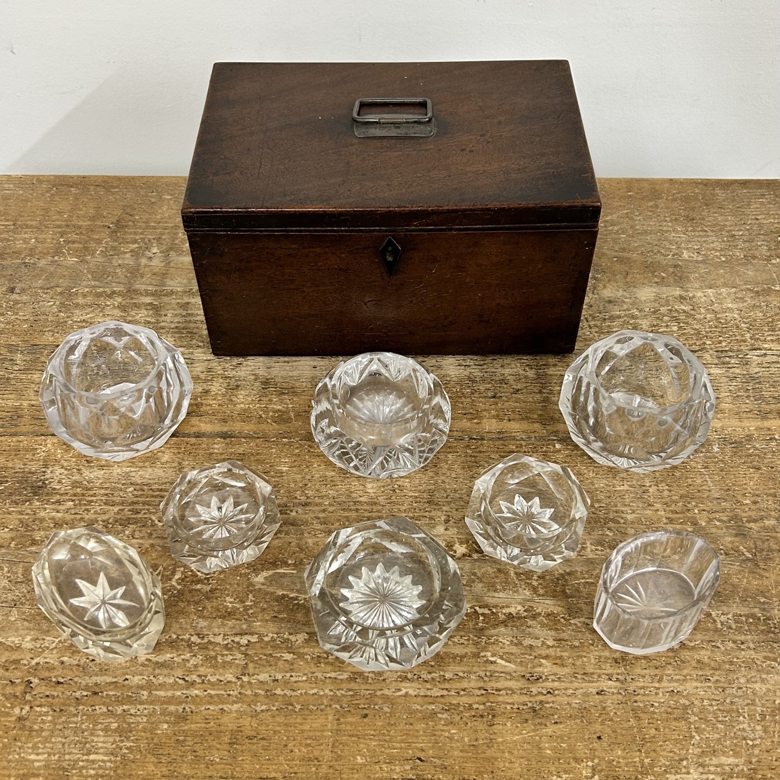 An antique mahogany small box (no key) together with a selection of cut glass salts (a few with chips)