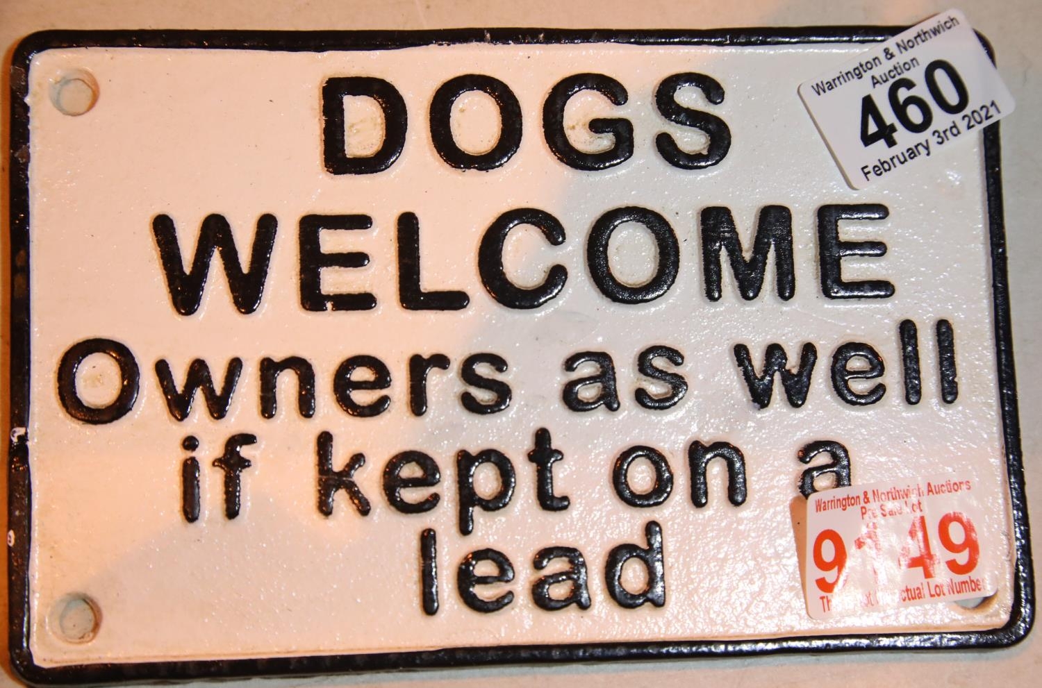 Cast iron Dogs Welcome sign, 20 x 13 cm. P&P Group 1 (£14+VAT for the first lot and £1+VAT for subsequent lots)