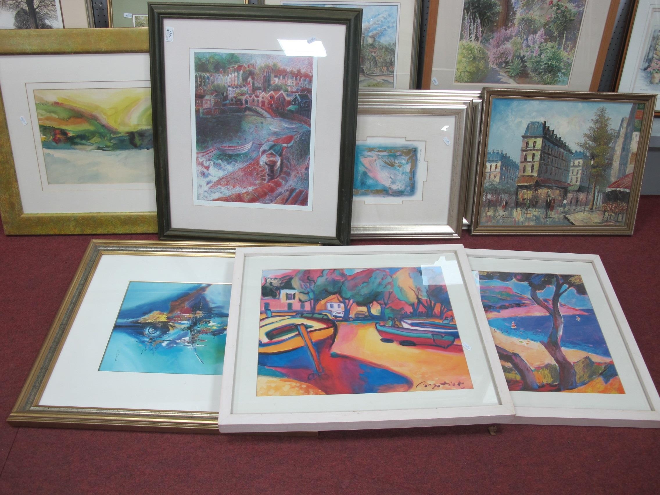 Impressionist French Street Scene, oil on canvas, signed lower left, 39.5 x 49.5cm, JR Marsh artwork, prints (8).