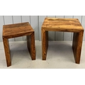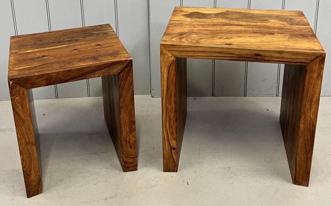A pair of Sheesham solid wood side tables. Dimensions(cm) H50/44, W50/38, D40/37.