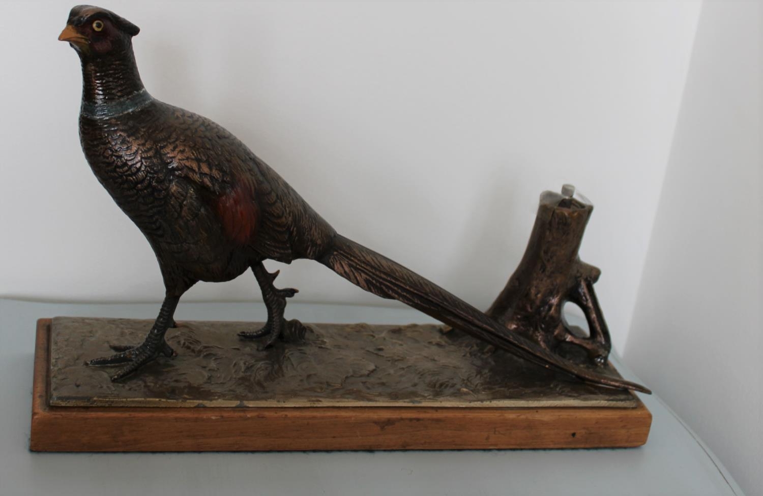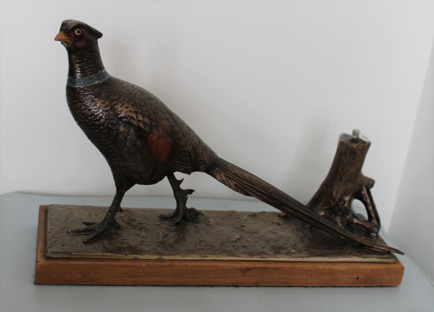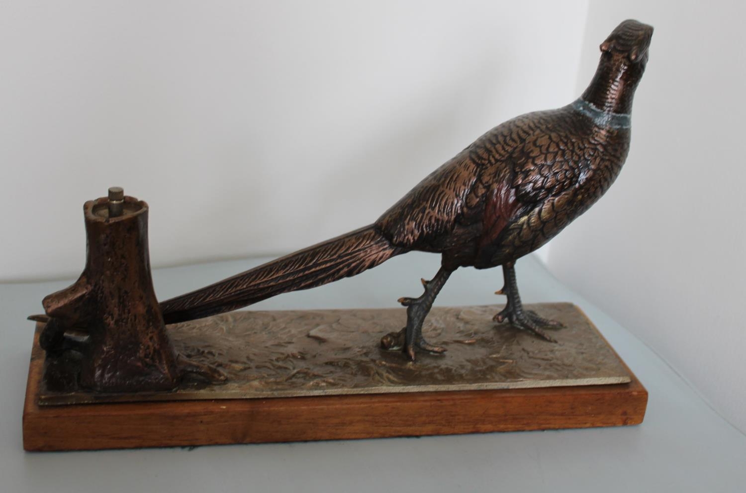 Gold Painted Metal Pheasant Fire Striker on Plinth. Possibly Bronze.Measures 20cm high x 31cm Wide x 9cm Depth approx.