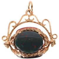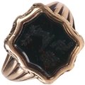 Light abrasions around edges of bloodstone and 1 tiny edge nick, general wear to high points of mount and shank is wearing thin with 1 join mark, unmarked