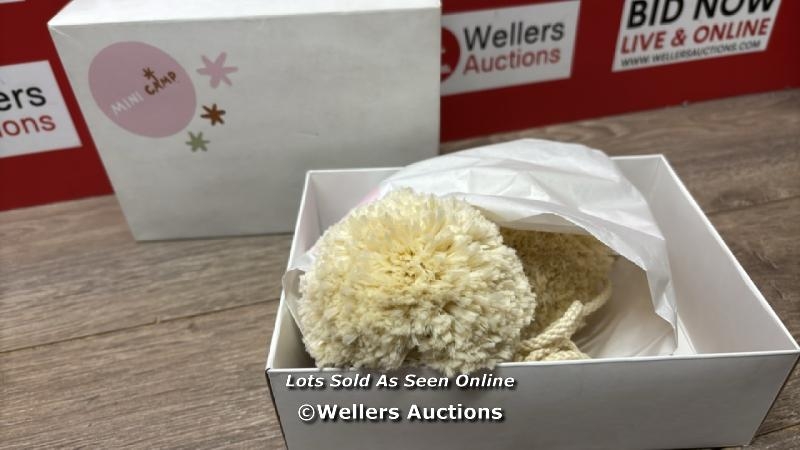 RRP: 13 - MINI CAMP POM POMS FLOWER GARLAND OS BEIGE / NEW OPEN BOX