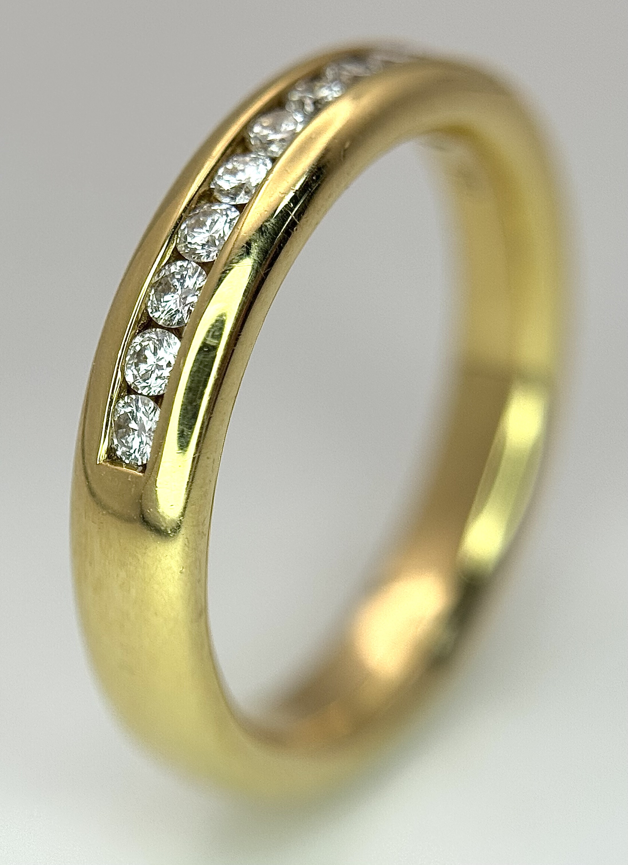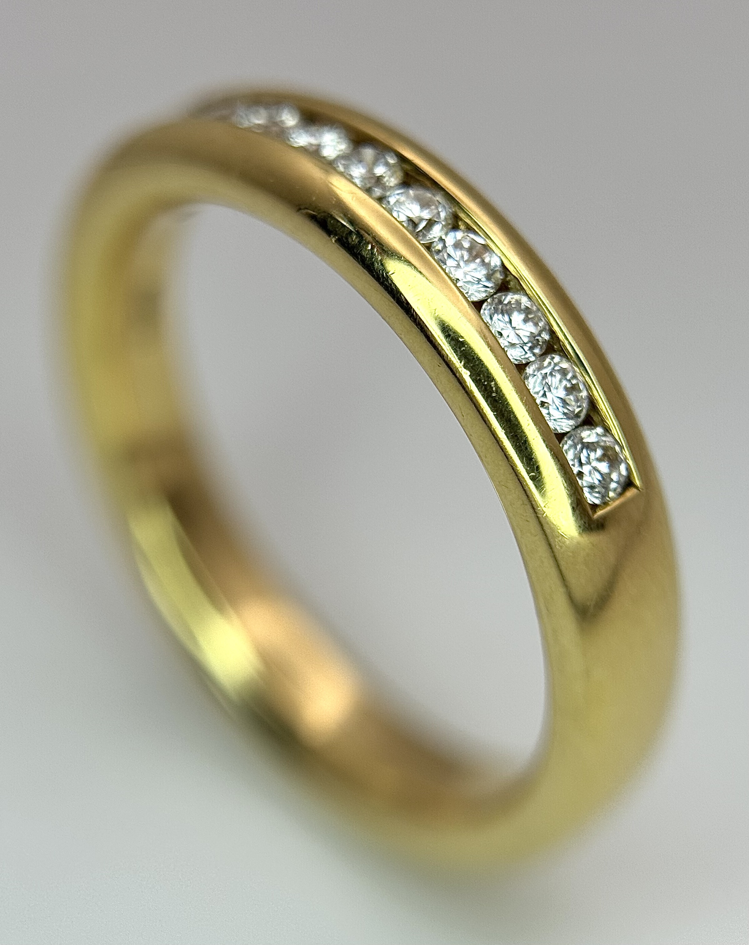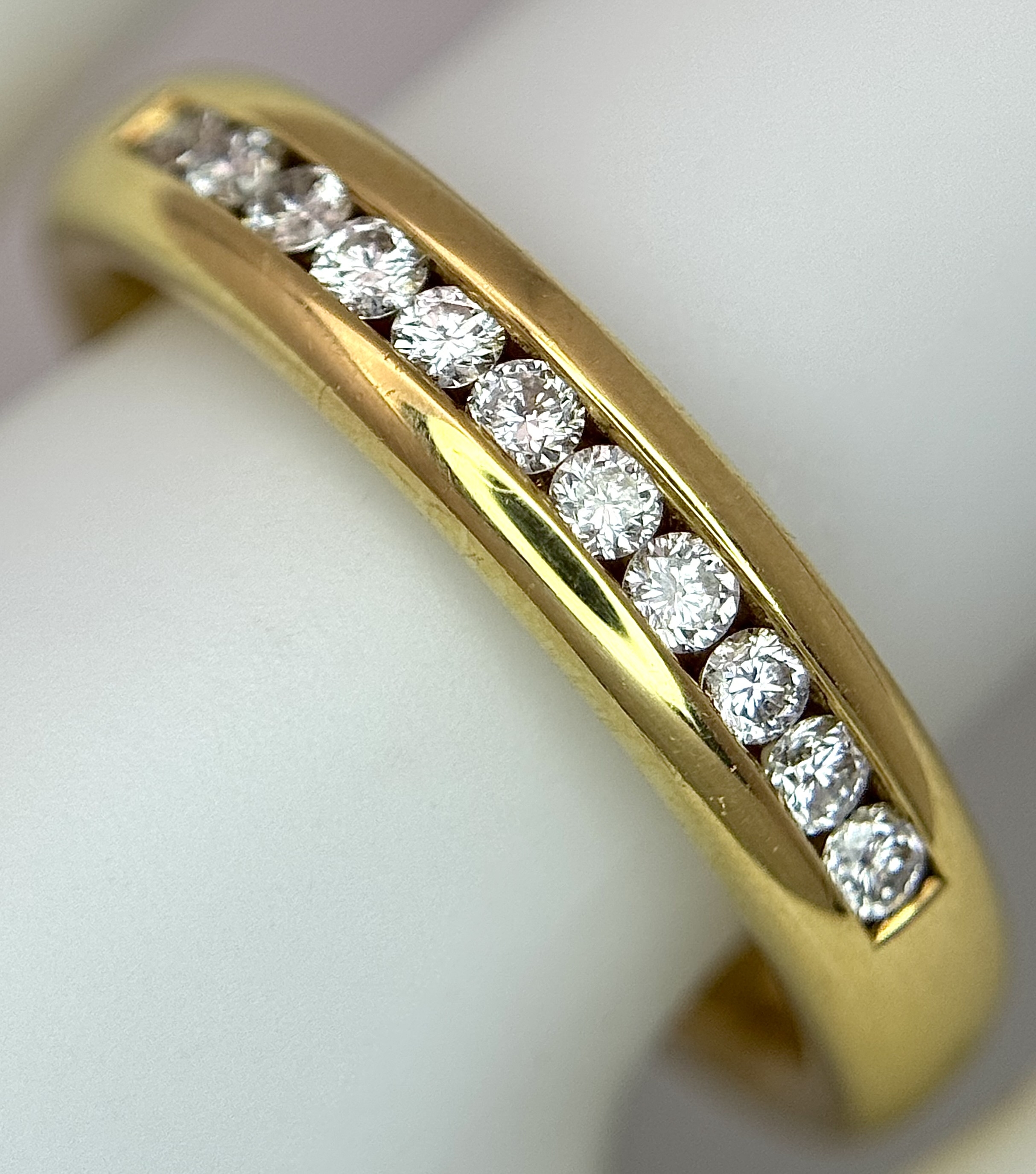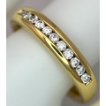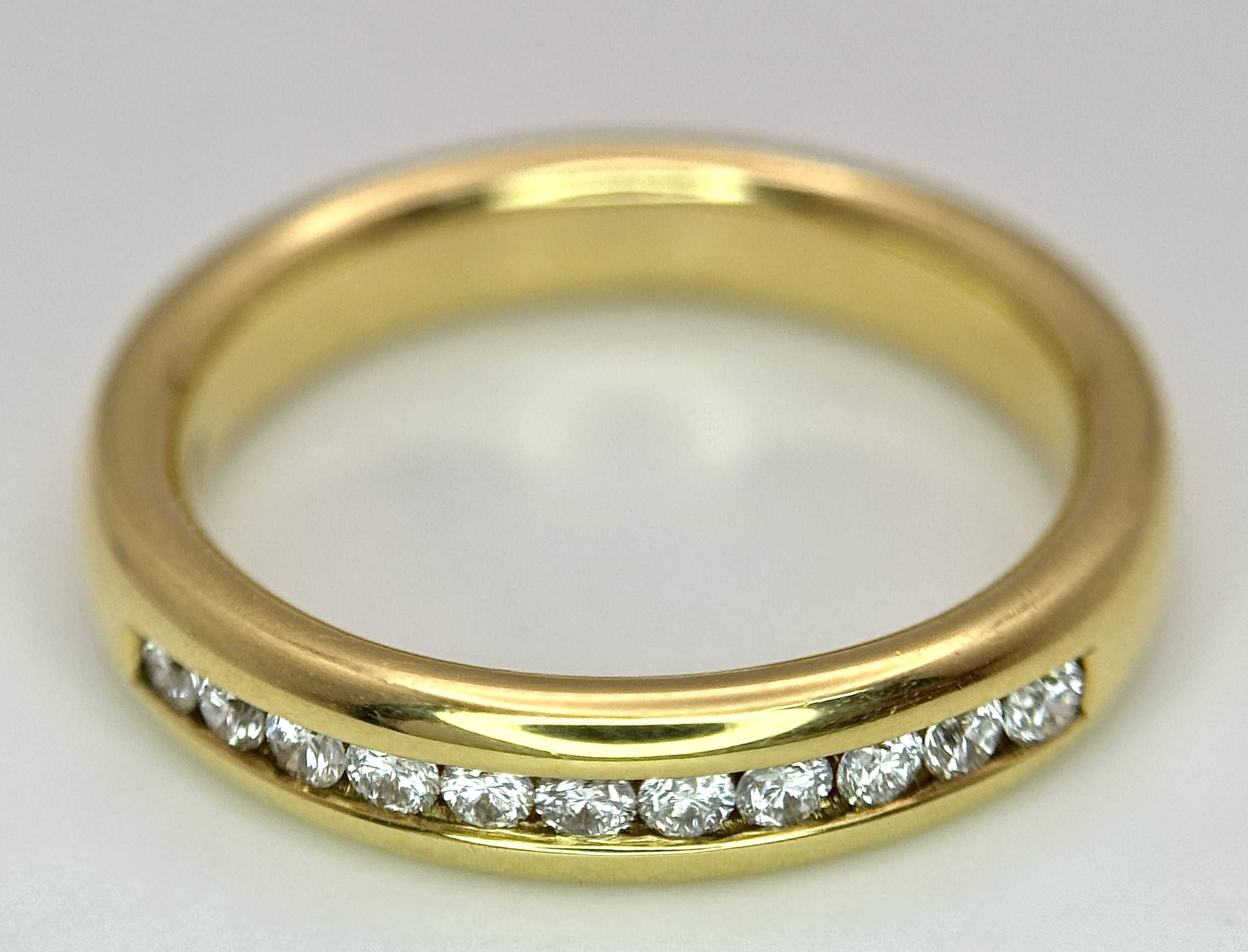 An 18K Yellow Gold and Diamond Half Eternity Ring. Size N. Channel set round brilliant cut diamonds. 6.2g total weight. Ref: 13197.