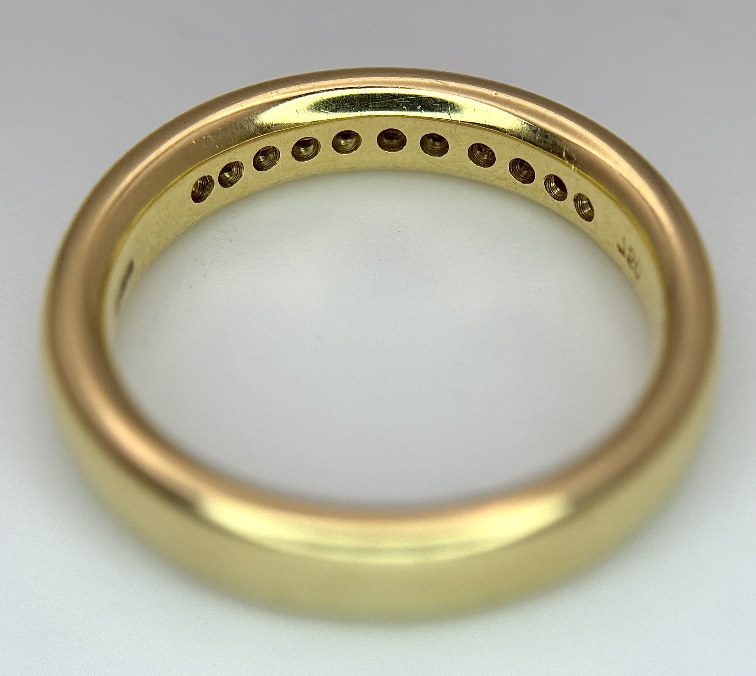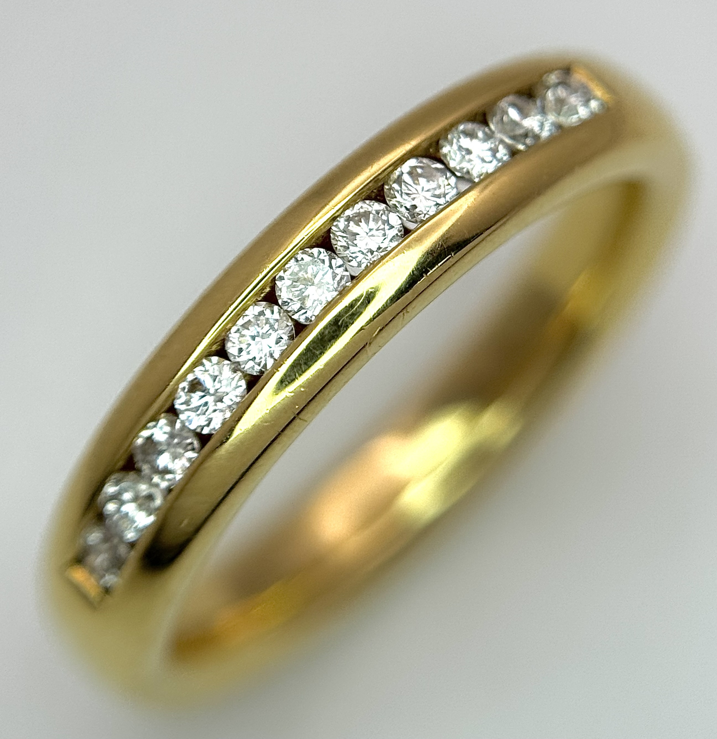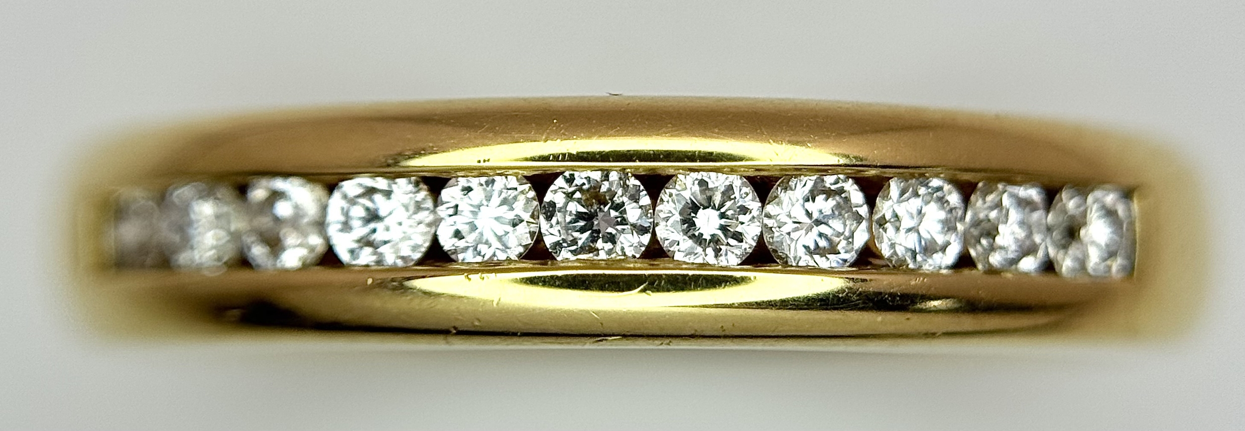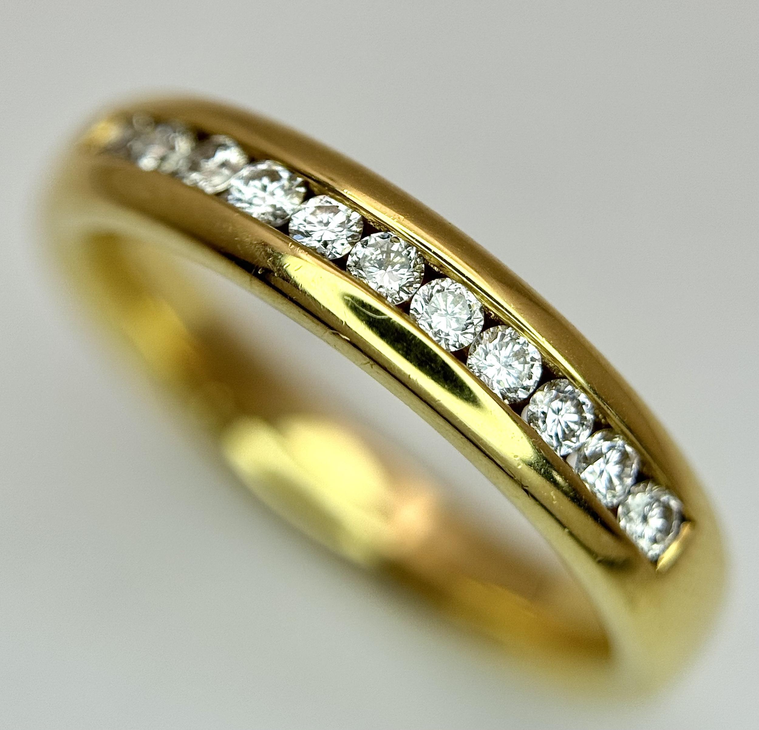 An 18K Yellow Gold and Diamond Half Eternity Ring. Size N. Channel set round brilliant cut diamonds. 6.2g total weight. Ref: 13197.