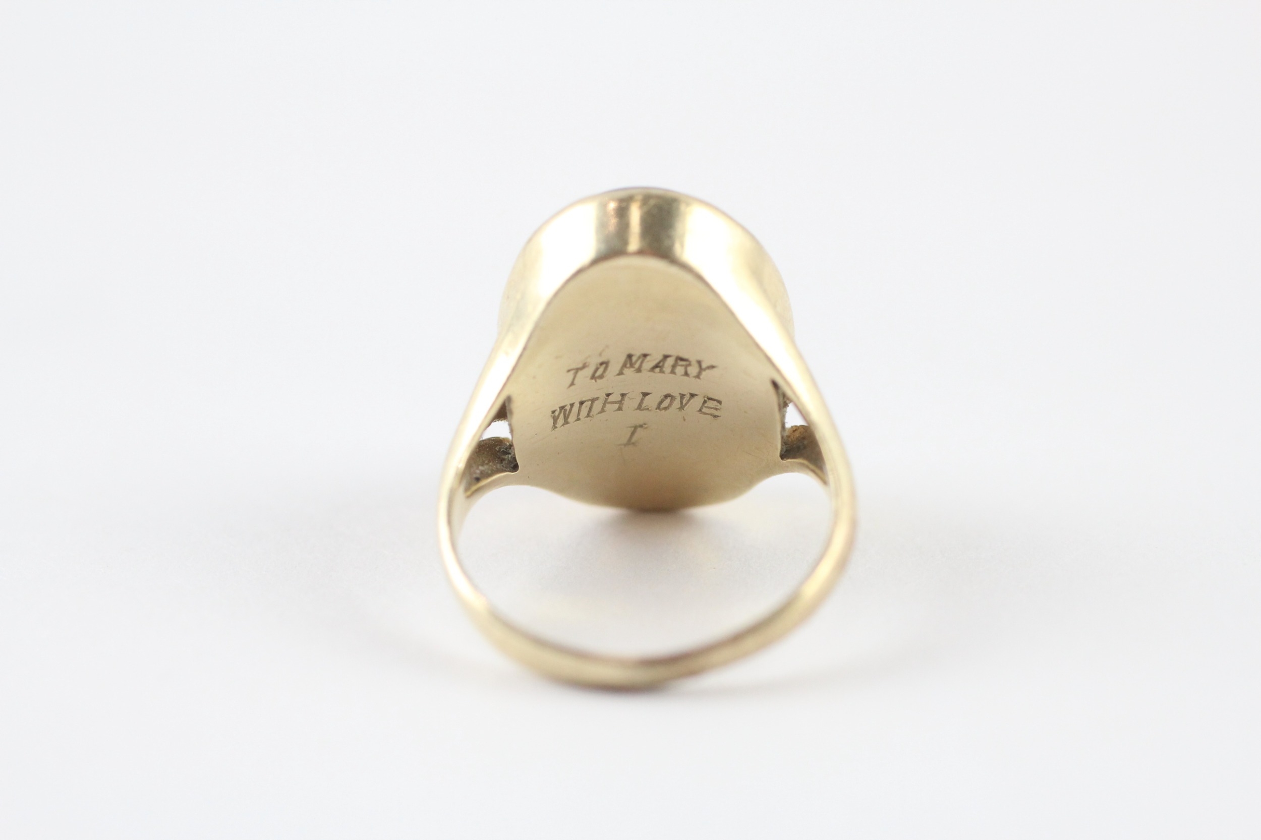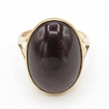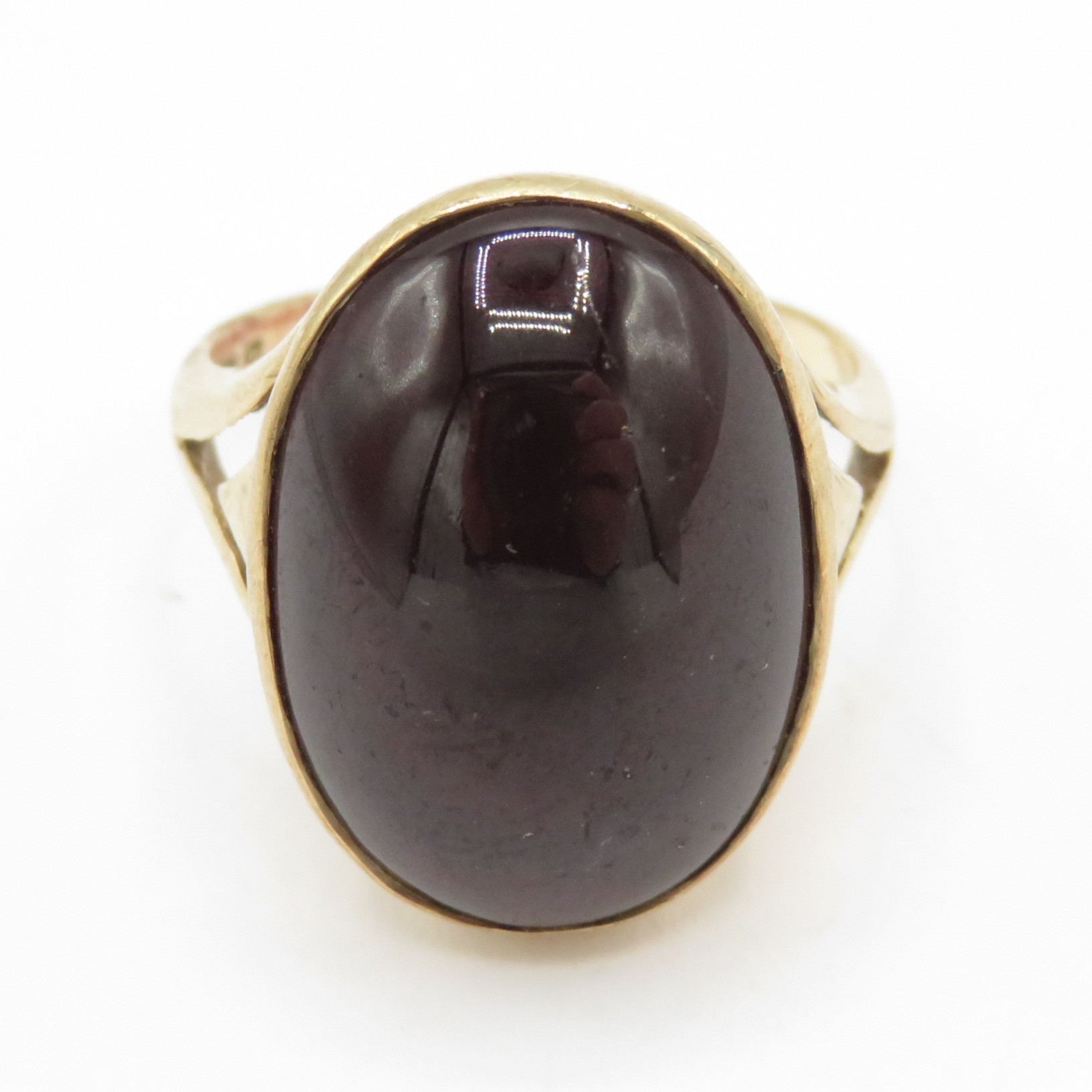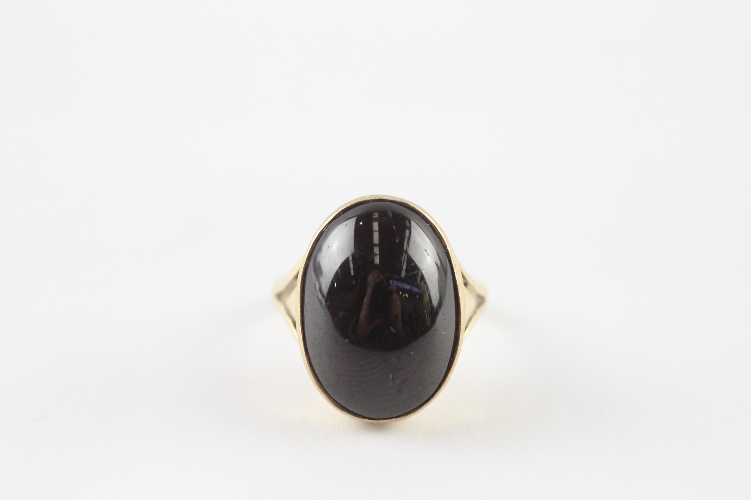 9ct gold garnet cabochon signet ring (5.4g) Size M