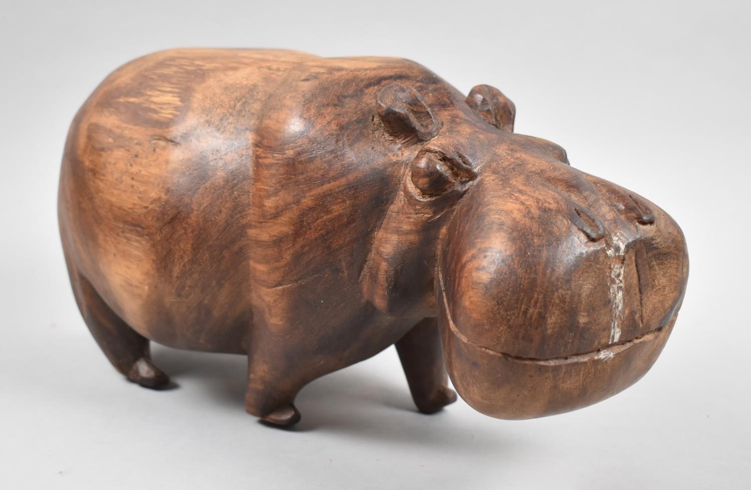 A Large African Carved Souvenir in the Form of a Hippo, 35cm Long