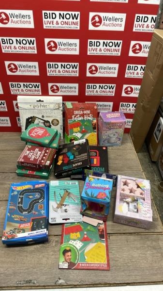 BOX OF GIFTWARE INCL. HAMMER MULTI-TOOL AND HOTWHEELS WALL DECAL SETS AND MORE / PLEASE NOTE: ANY PURCHASES LEFT AFTER 5 WORKING DAYS MAY BE RE-SOLD TO COVER STORAGE & ADMIN