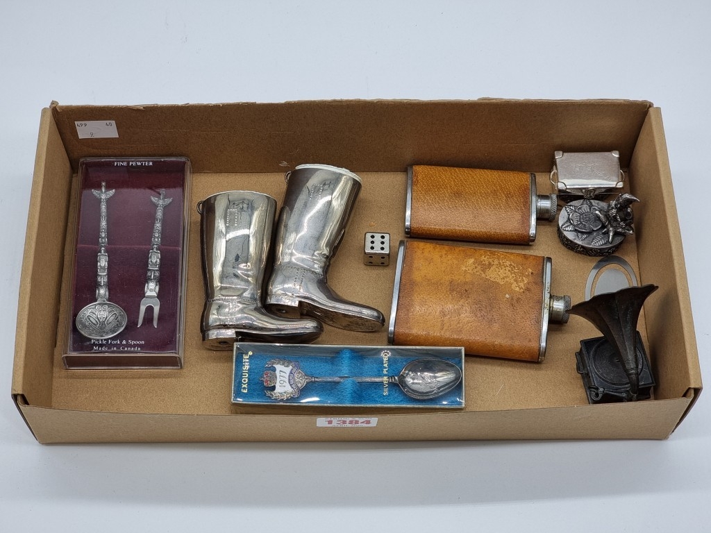 A mixed lot, to include: a 1977 Jubilee spoon; and two small hip flasks. (11)