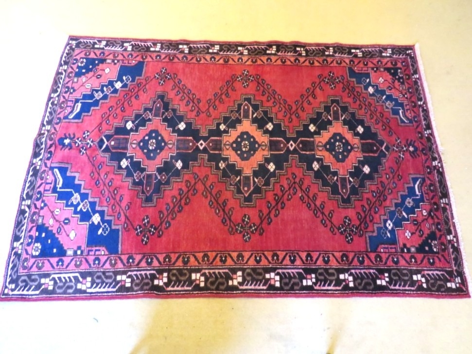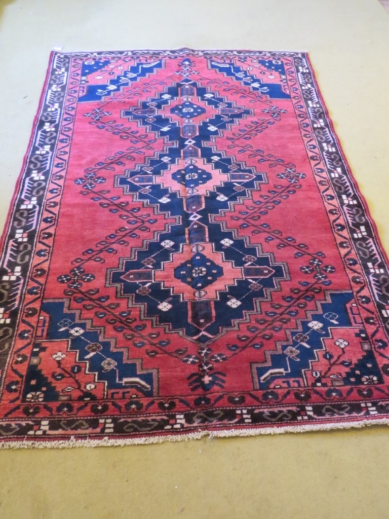 A North West Persian Rudbar rug with three central medallions on a red ground. 200cm x 140cm approx.
