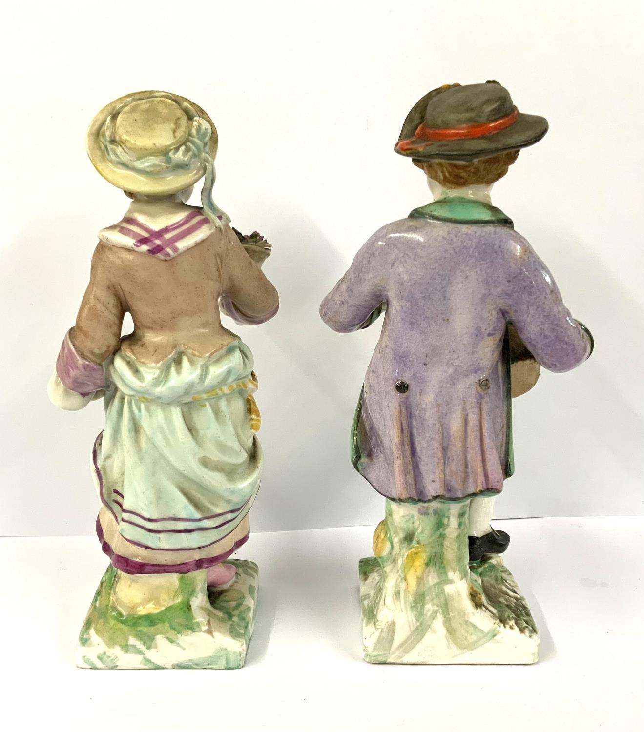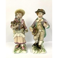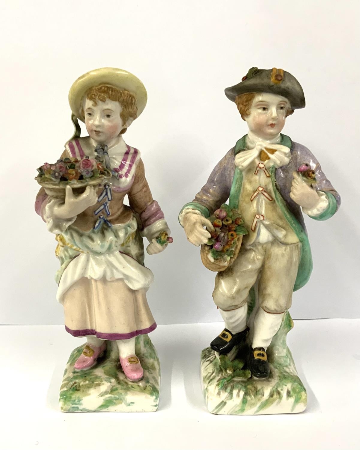 A pair of Sitzendorf porcelain figures of a boy and girl flower seller. 14.5cm. NO RESERVE