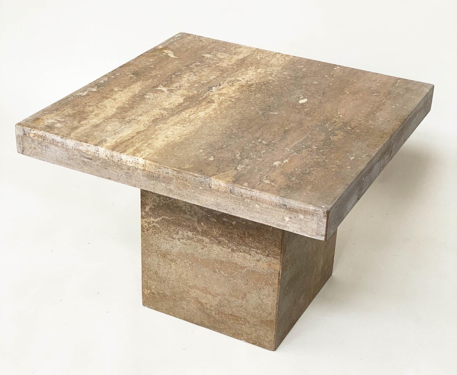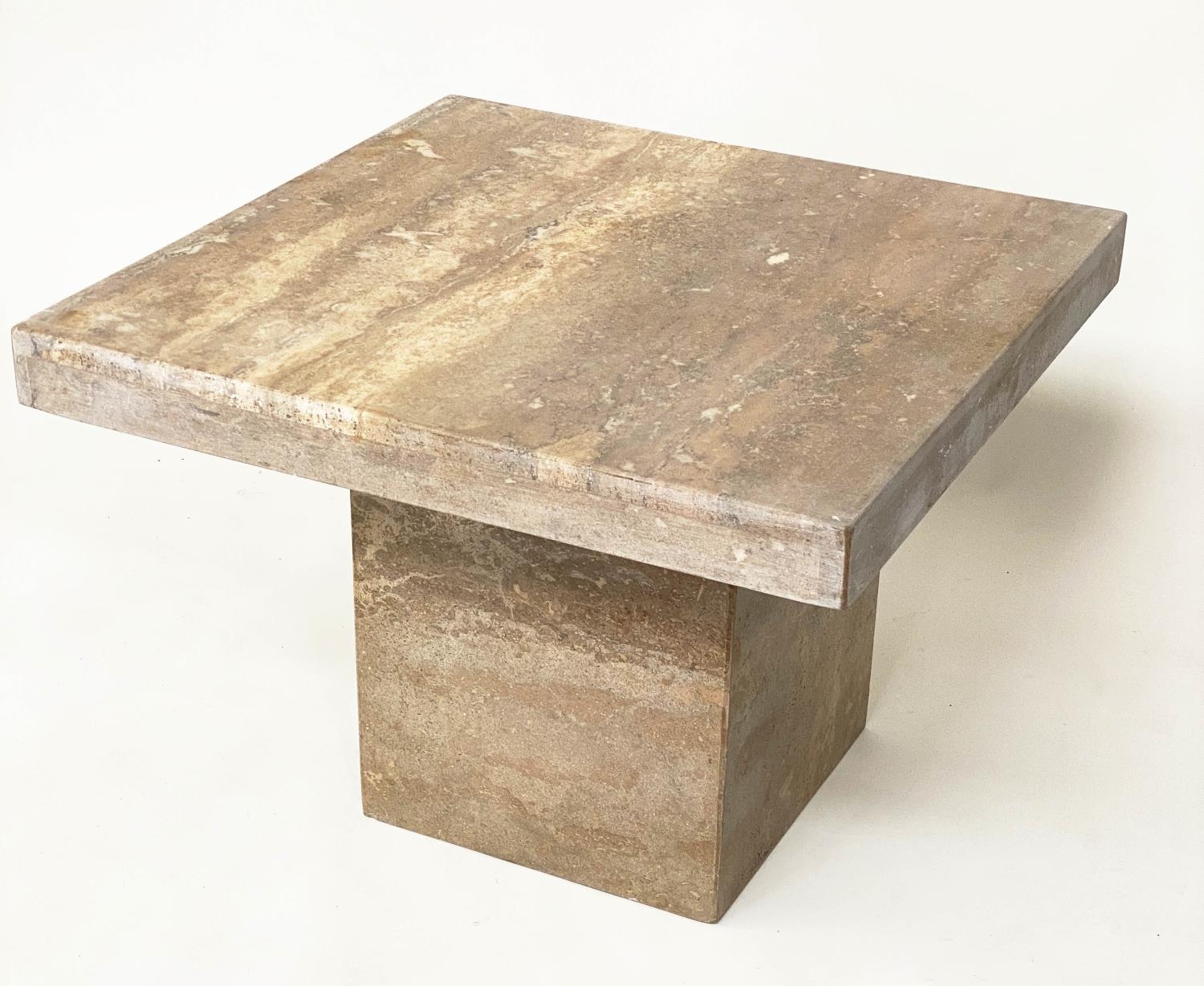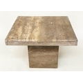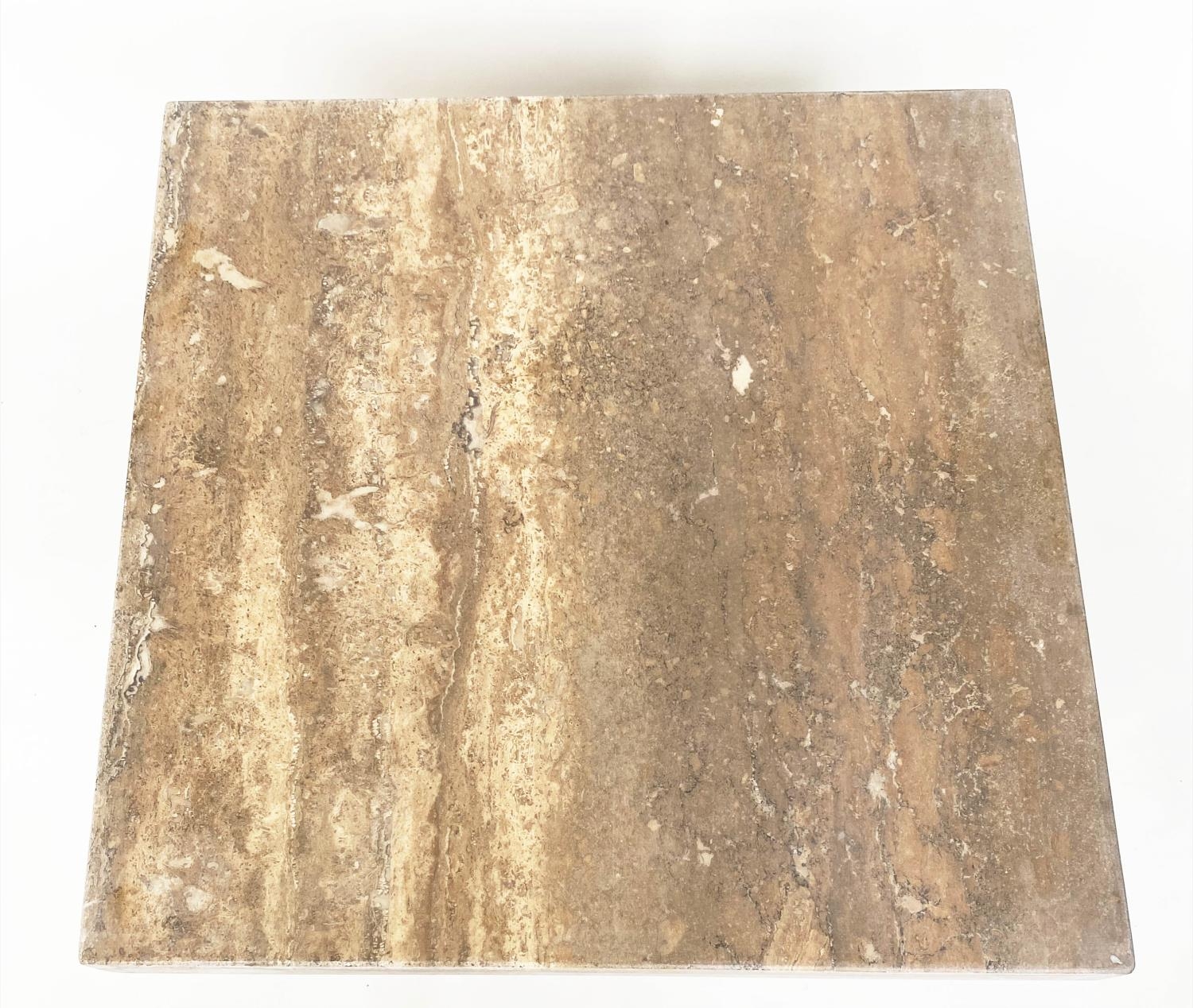 TRAVERTINE LOW TABLE, 1970's Italian marble square on plinth base, 65cmx 65cmx 47cm H.