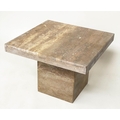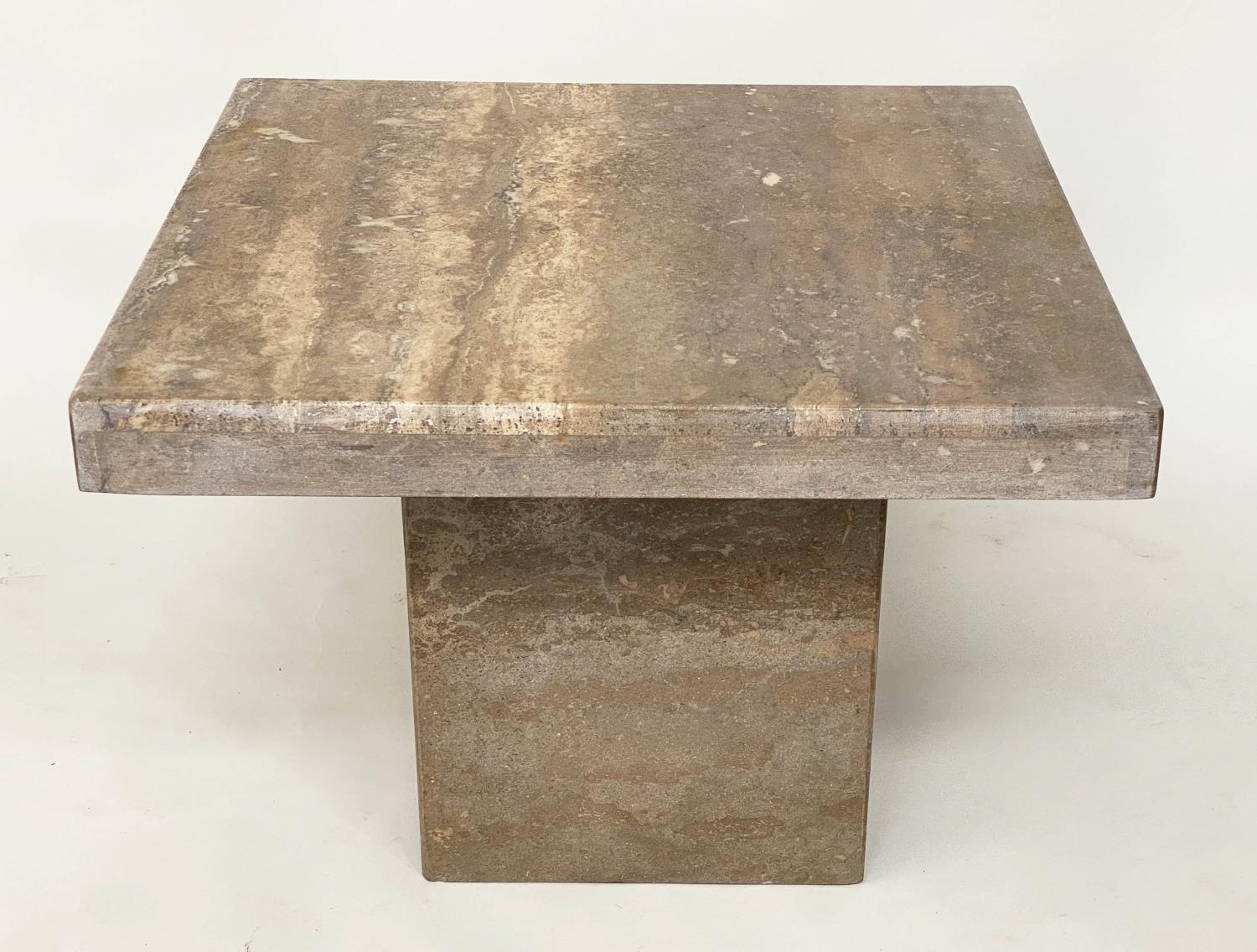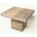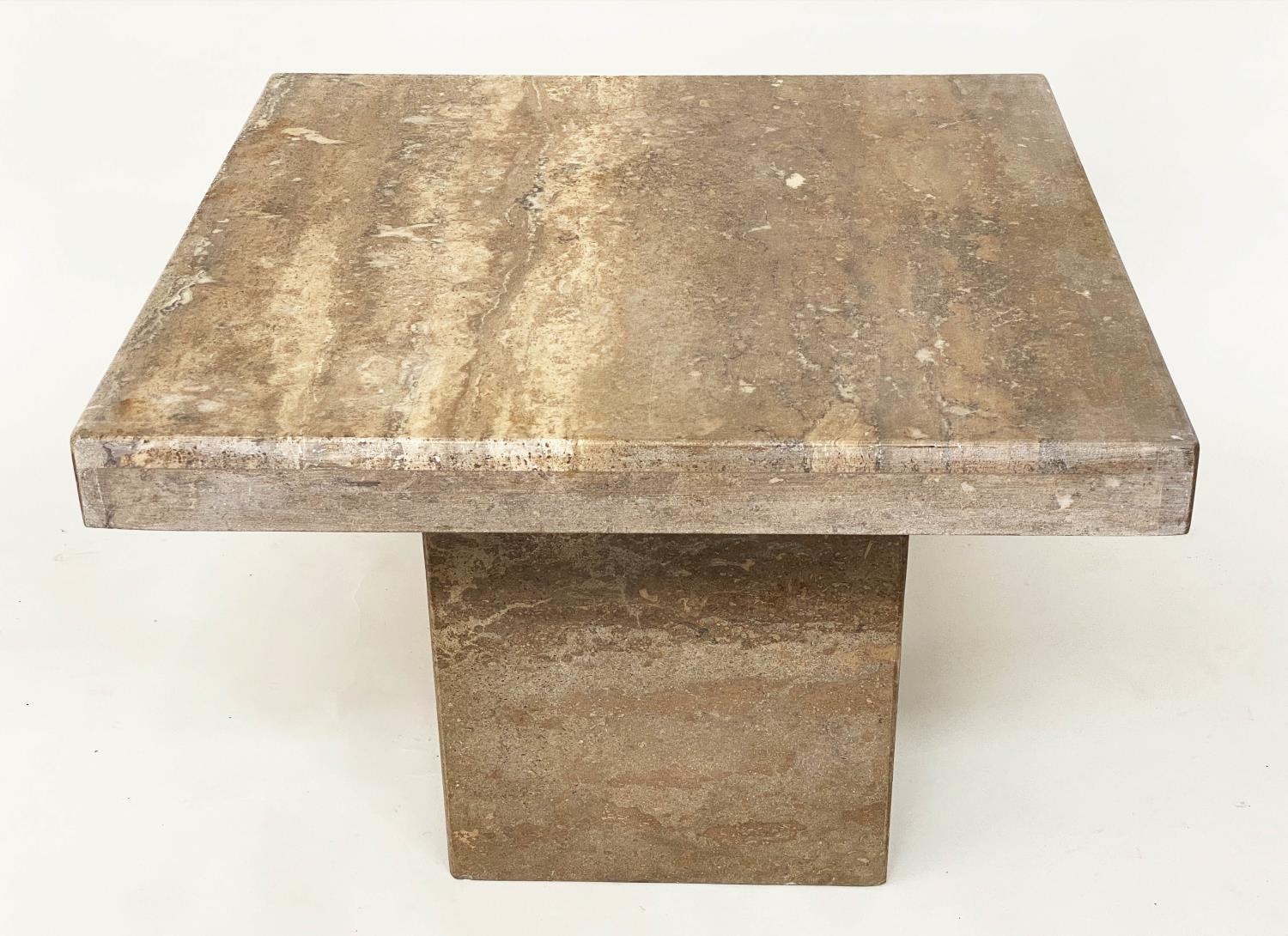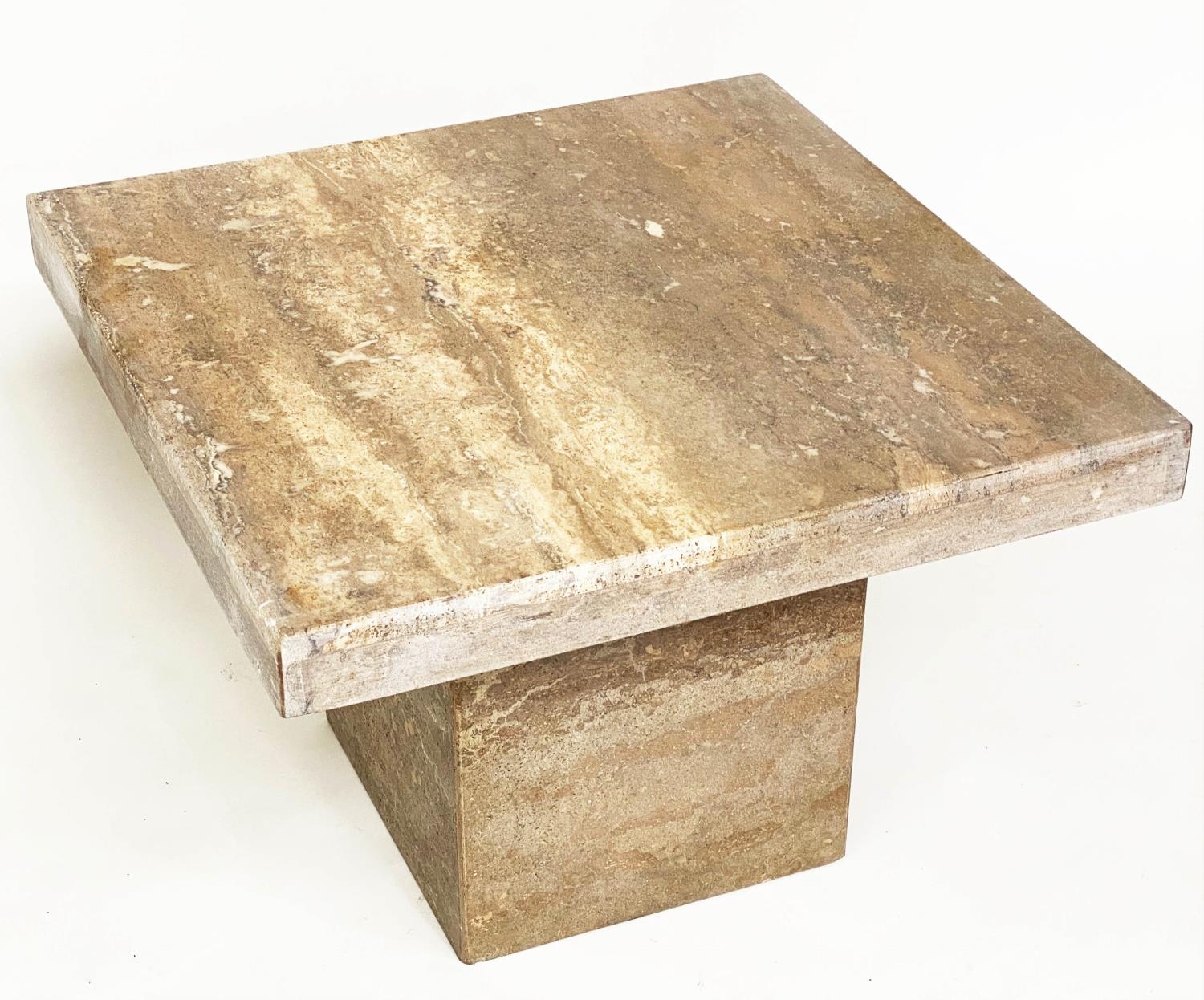 TRAVERTINE LOW TABLE, 1970's Italian marble square on plinth base, 65cmx 65cmx 47cm H.