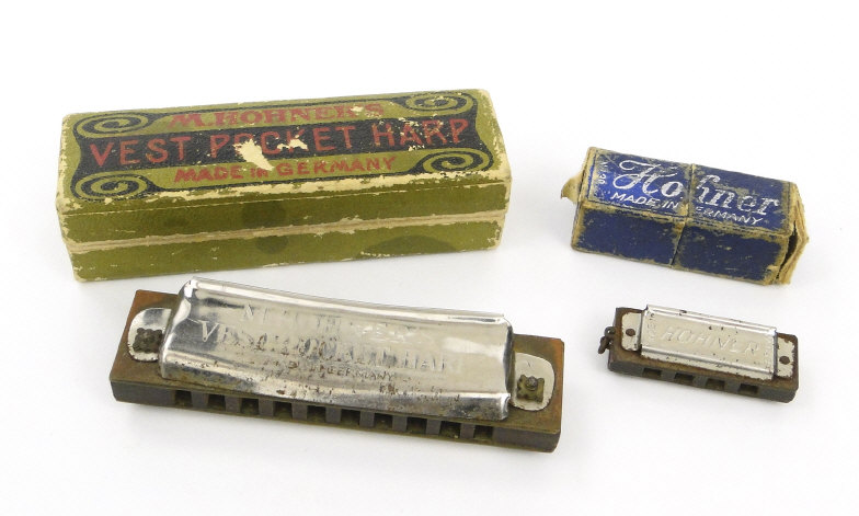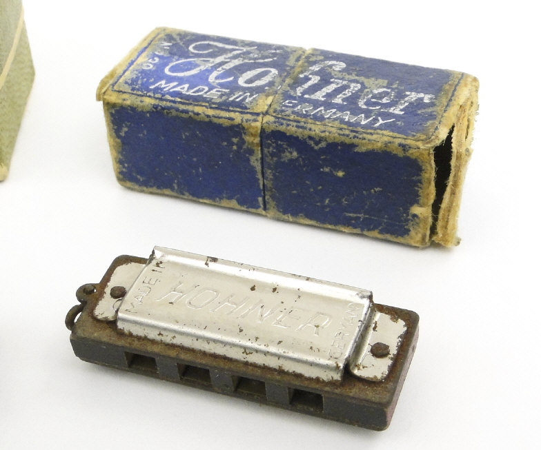 Two boxed miniature Hohners accordions, the larger 8cm in length