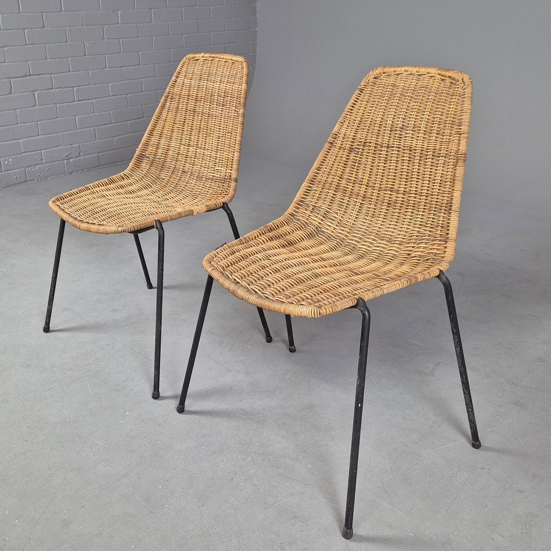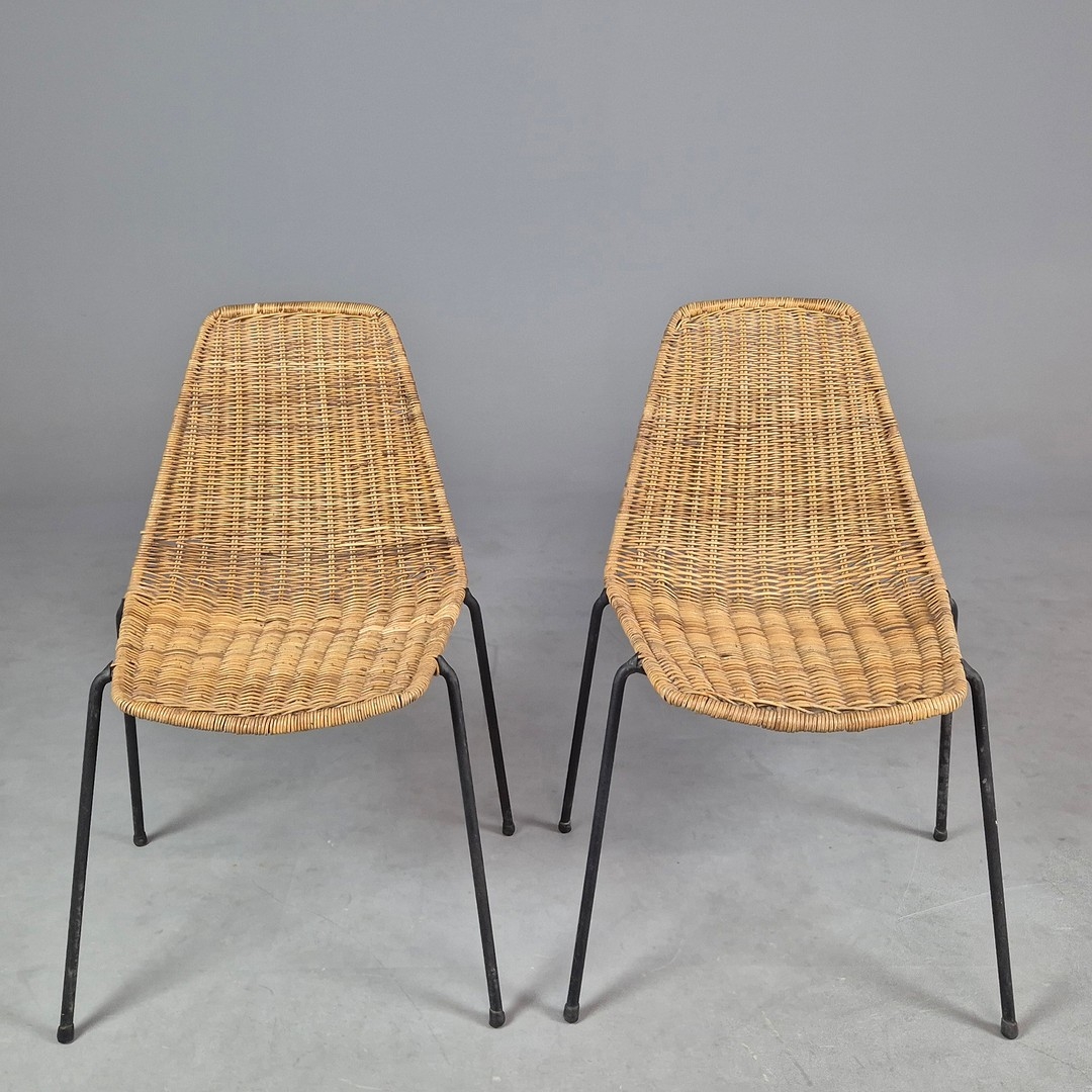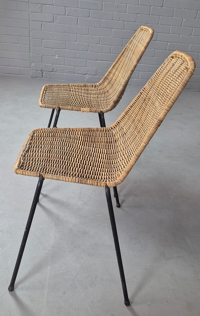 PAIR OF 1950s ITALIAN RATTAN SIDE CHAIRS BY GIAN FRANCO LEGLER. 80cm H x 49cm W x 55cm D.
