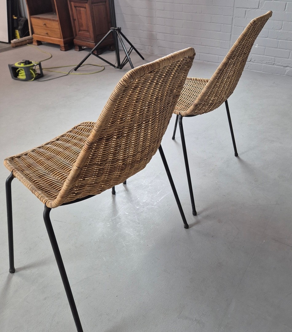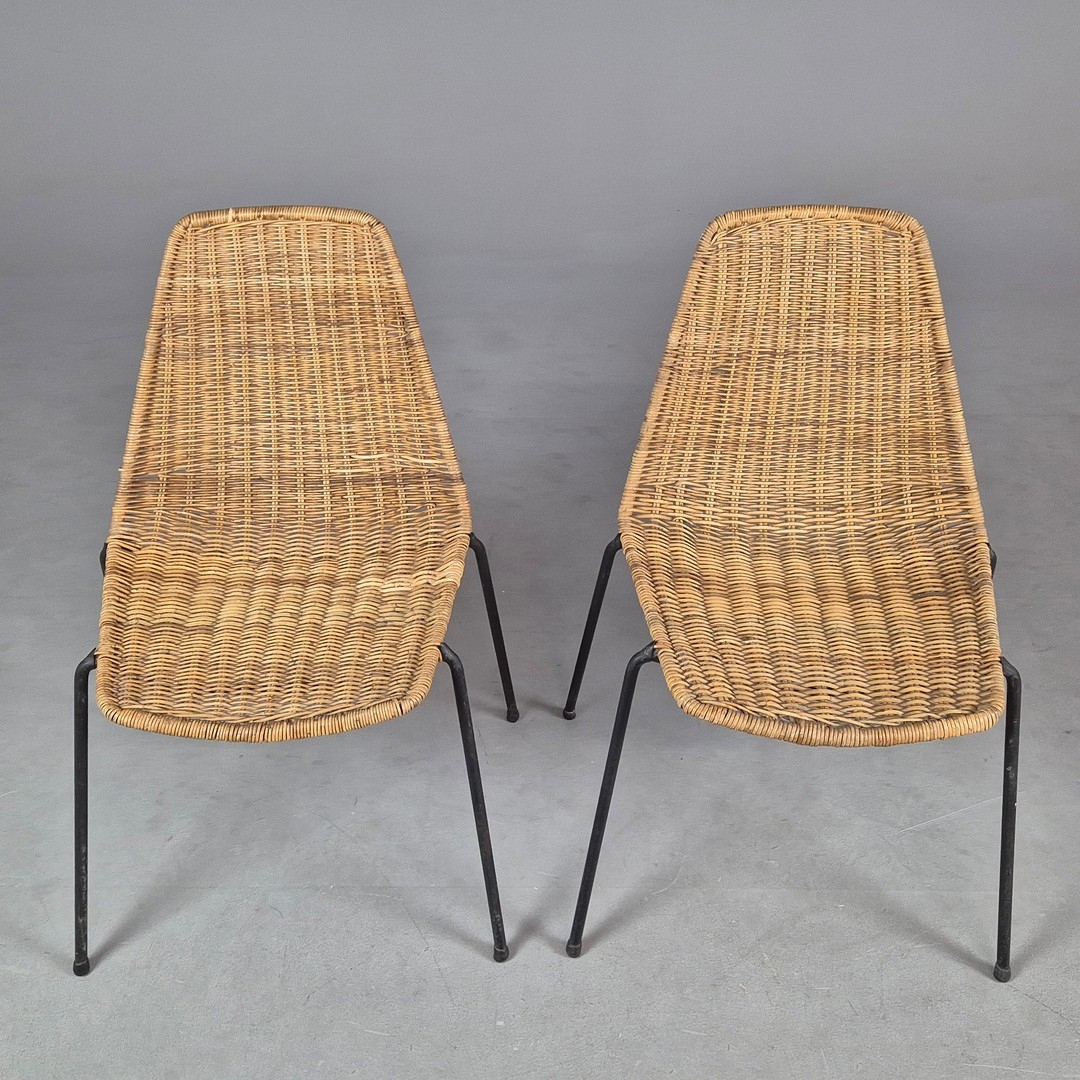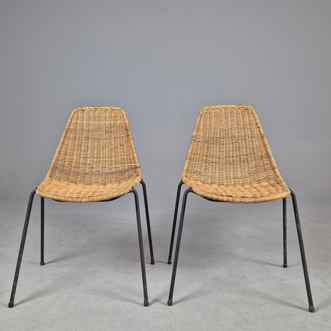 PAIR OF 1950s ITALIAN RATTAN SIDE CHAIRS BY GIAN FRANCO LEGLER. 80cm H x 49cm W x 55cm D.