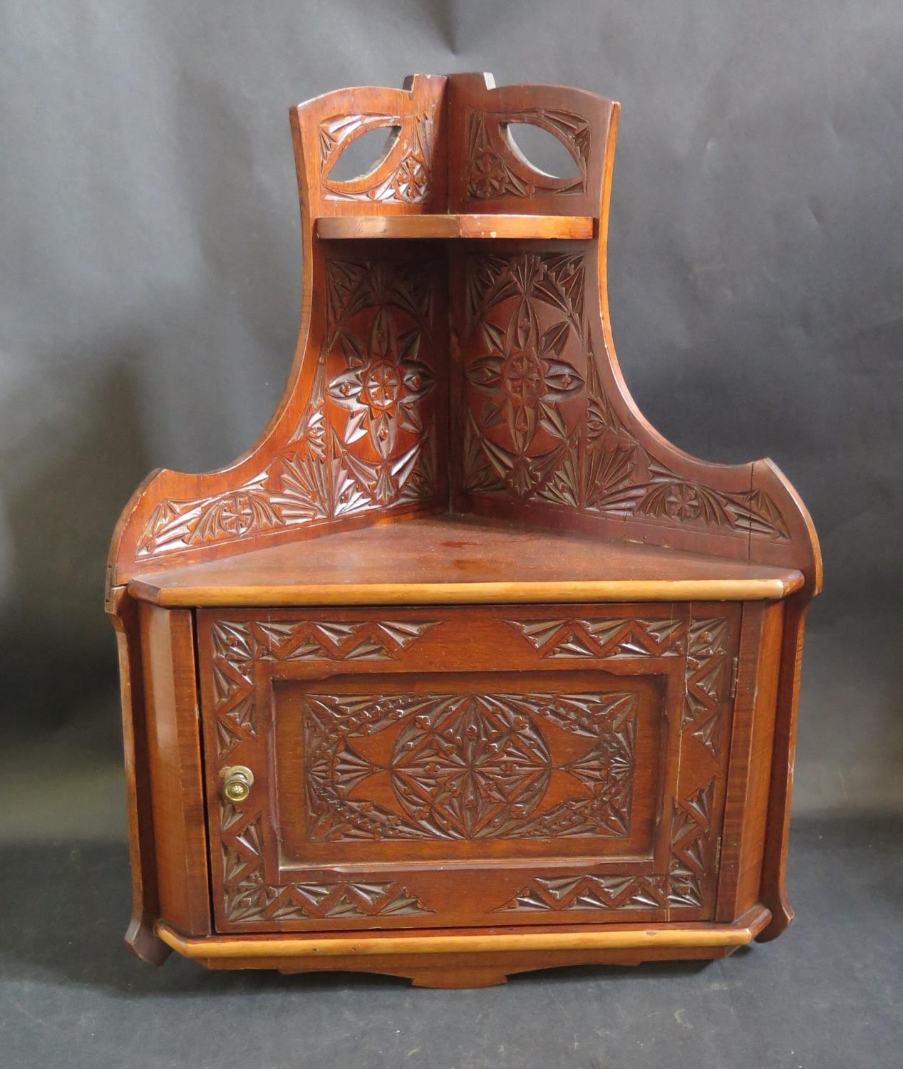 A Carved Hanging Corner Cupboard, 53cm and cane back chair