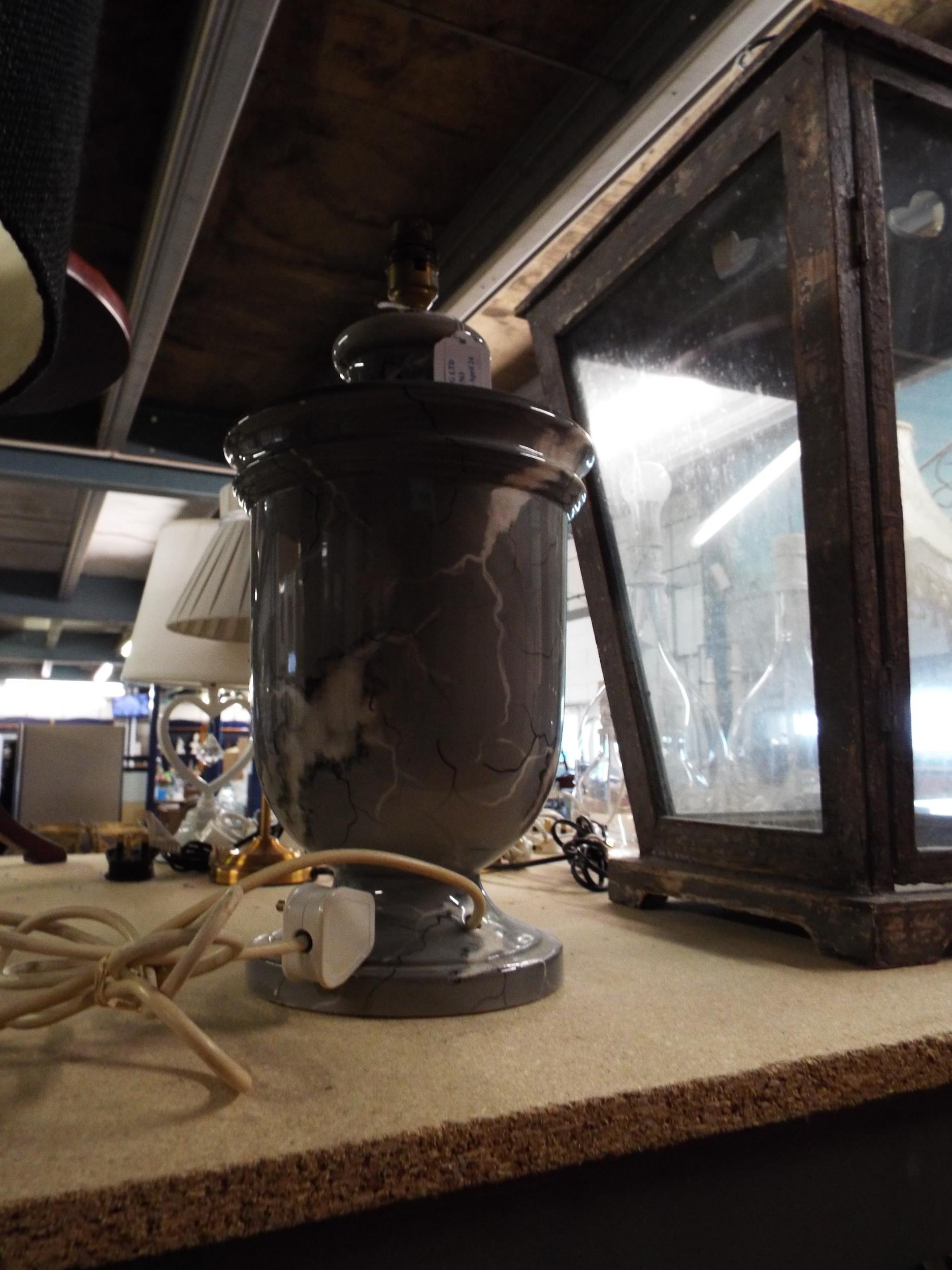 A large grey, white and black marble effect lamps no shade