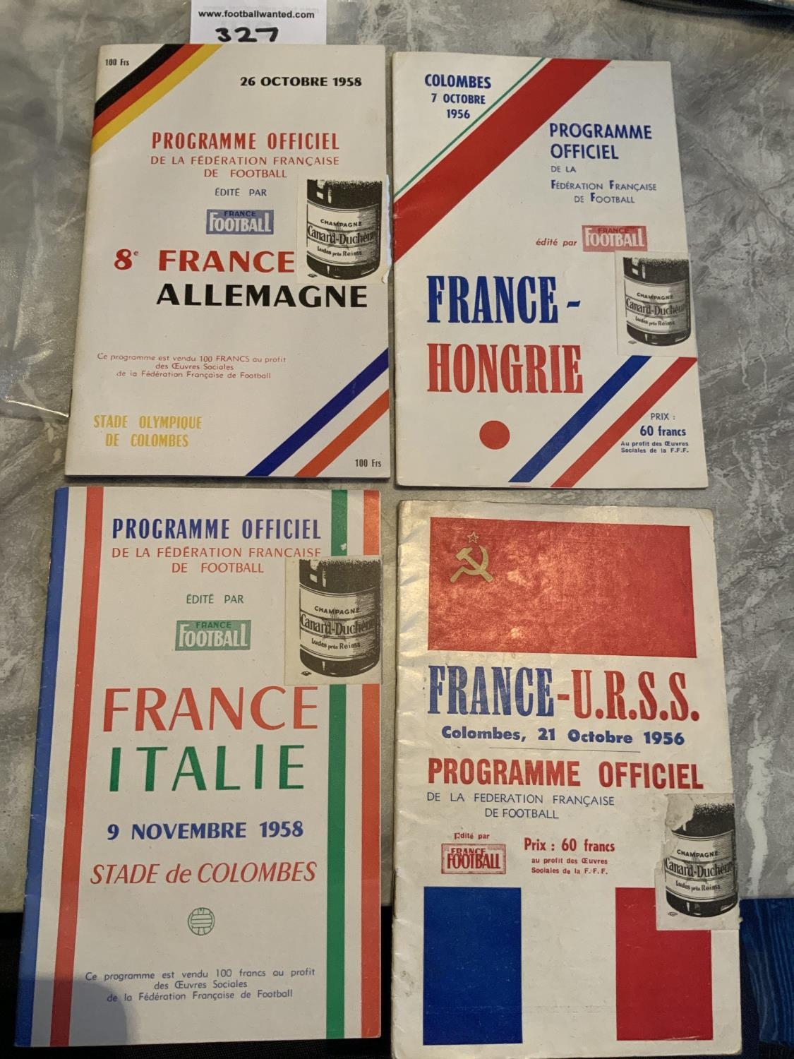 France 1950s Home Football Programmes: 1956 Hungary Russia 1958 Italy Germany. Good. (4)