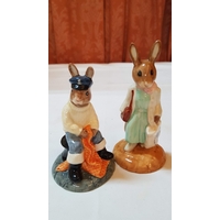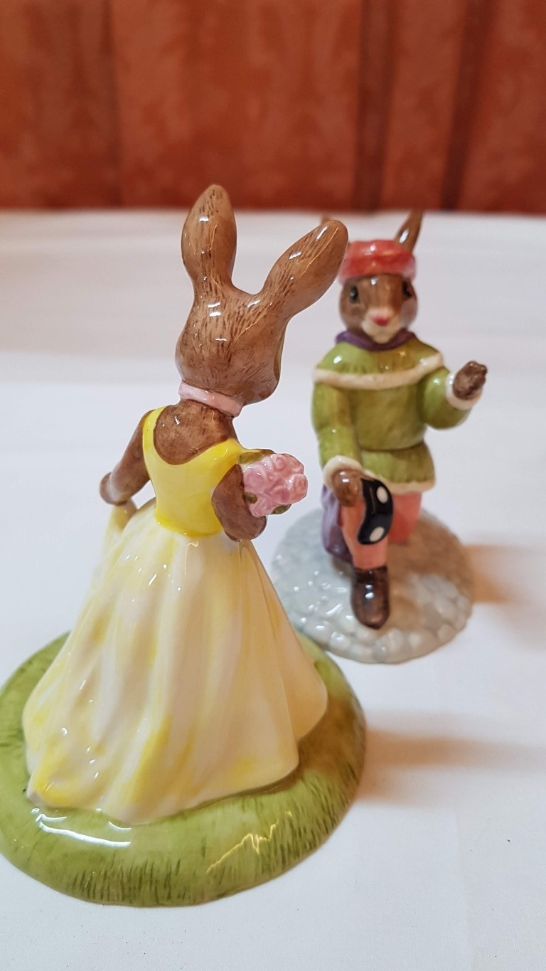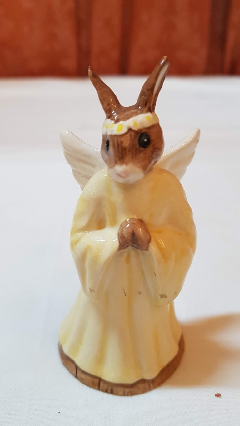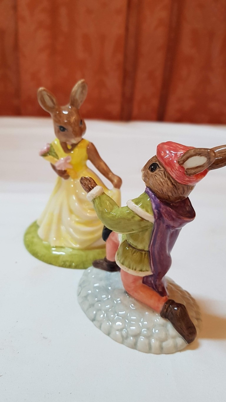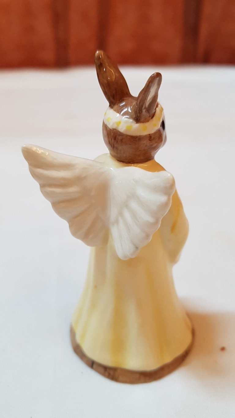 Vintage Royal Doultan 3x 'Bunnykins' Porcelain Figurines; 'Bride' with Love Bunnykins DB269, Approx. H: 11.5cm, 'Romeo Bunnykins' DB284, Approx. H: 9.5cm and 'Angel Bunnykins' DB196, Approx. H: 9.5cm, Hand Made and Hand Decorated. (2)