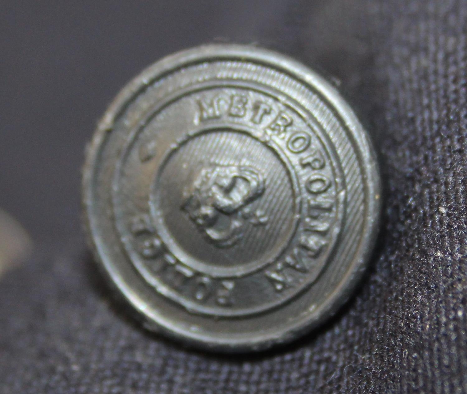 Vintage Metropolitan Police weatherproof greatcoat by Grantham, detachable quilted gilet, Met. Police buttons to shoulders, 21" armpit to armpit measurement