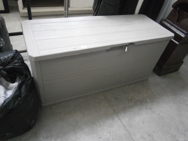 A large plastic garden storage box - broken catch