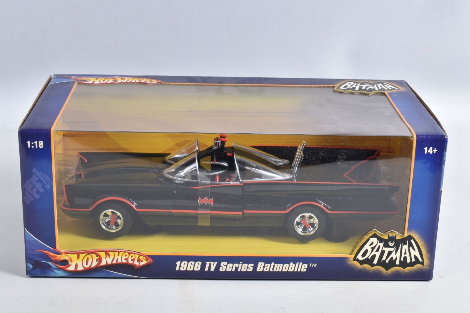 A SEALED BOXED 1:18 SCALE HOTWHEELS DC BATMAN 1966 TV SERIES BATMOBILE, no. L2090, model and box in a new condition with light dust, very little wear