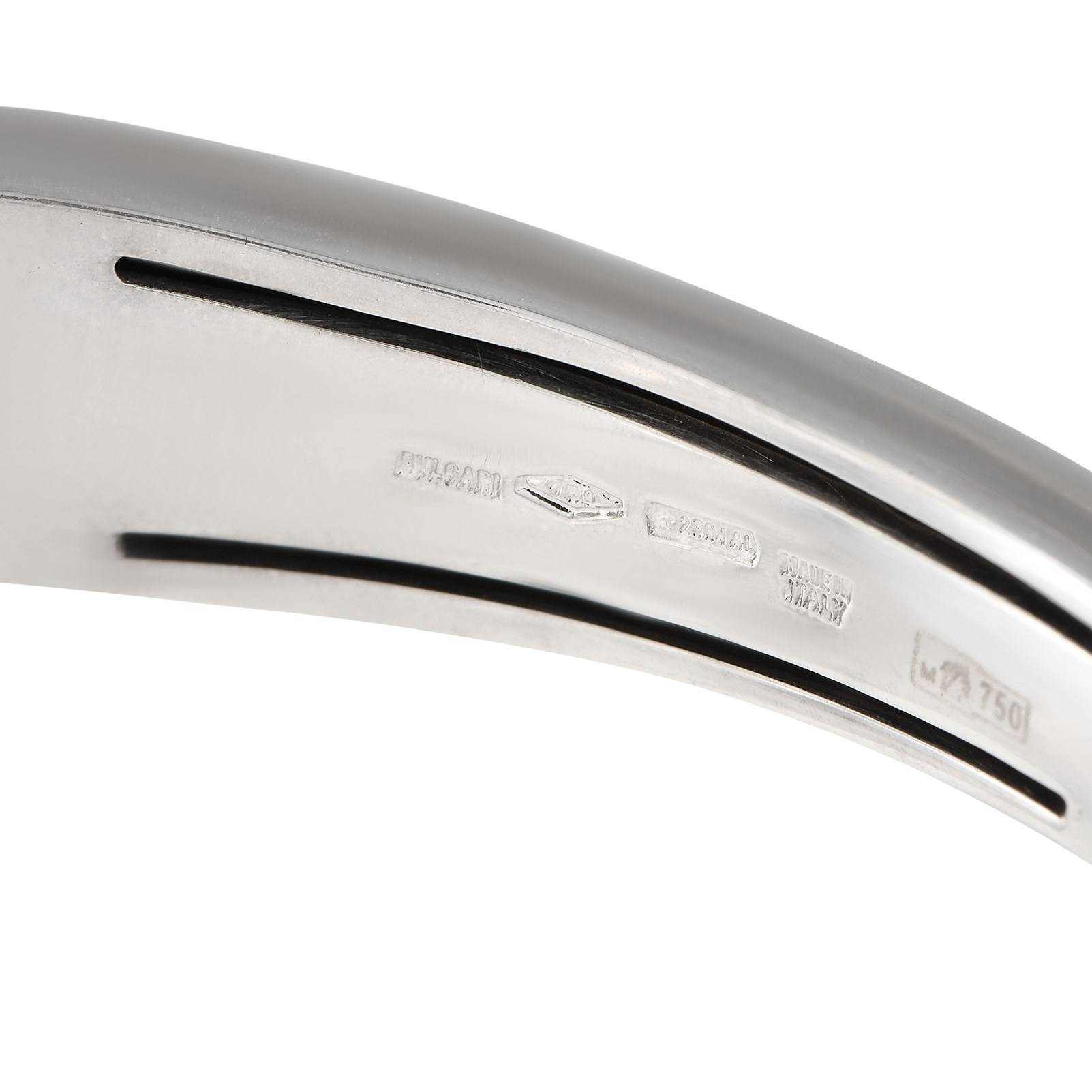 A Bvlgari Astrale Cerchi 18K White Gold 1.40ct Diamond Bracelet. A circular centerpiece featuring the brands signature and sparkling Diamonds totaling 1.40 carats. This sophisticated bangle bracelet measures 7.0 long. In excellent condition and includes a gift box. Total weight: 33.4 grams.*This item is held at Cadmore USA Office in Pennsylvania, USA and will be shipped from there*
