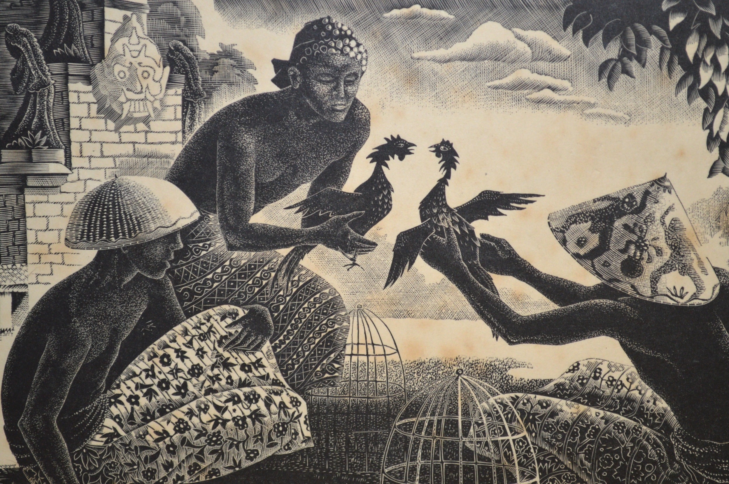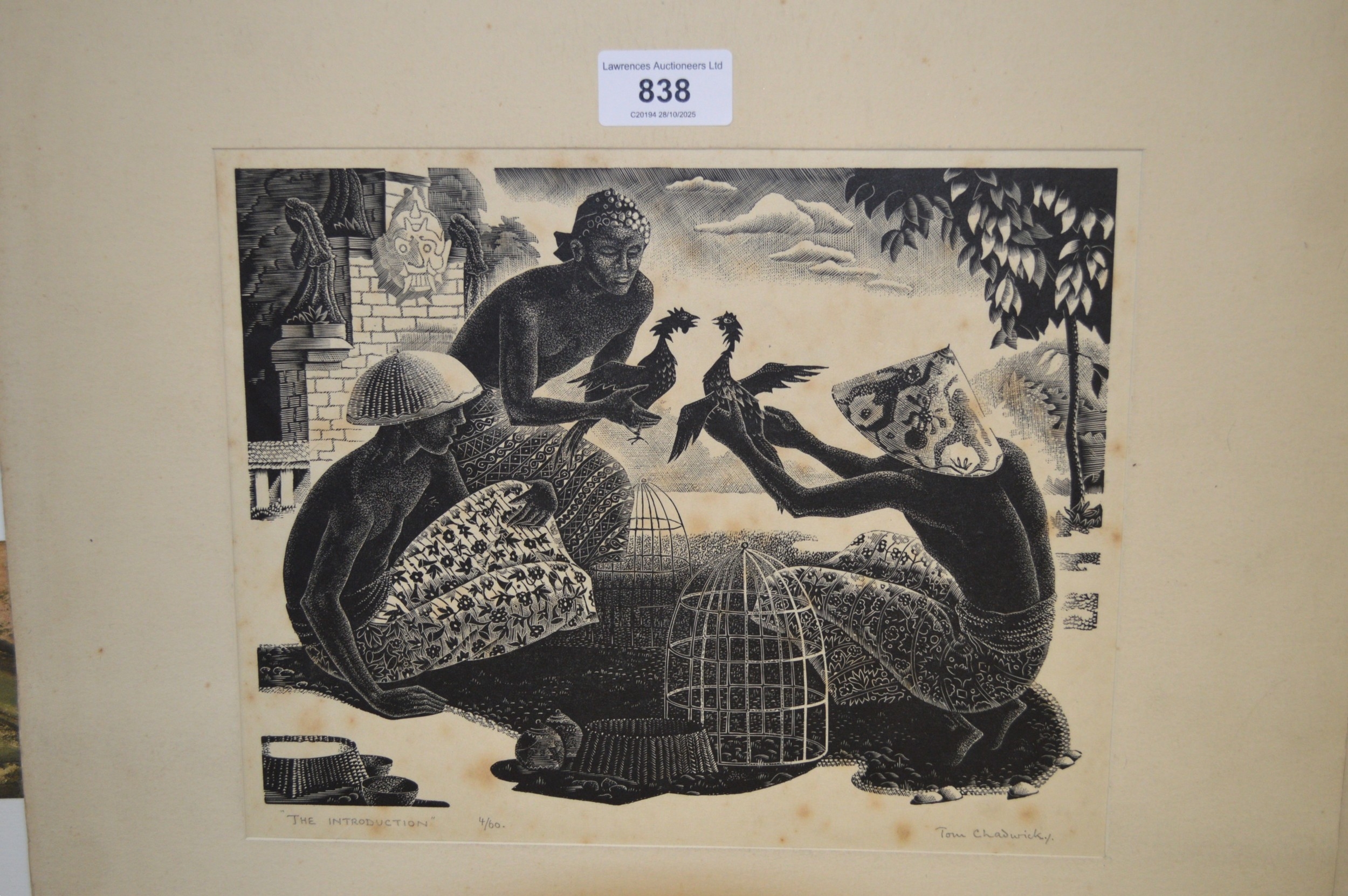 Tom Chadwick, artist signed Limited Edition wood engraving, ' The Introduction ', No. 4 of 60, 20 x 25cm, unframed (some foxing)