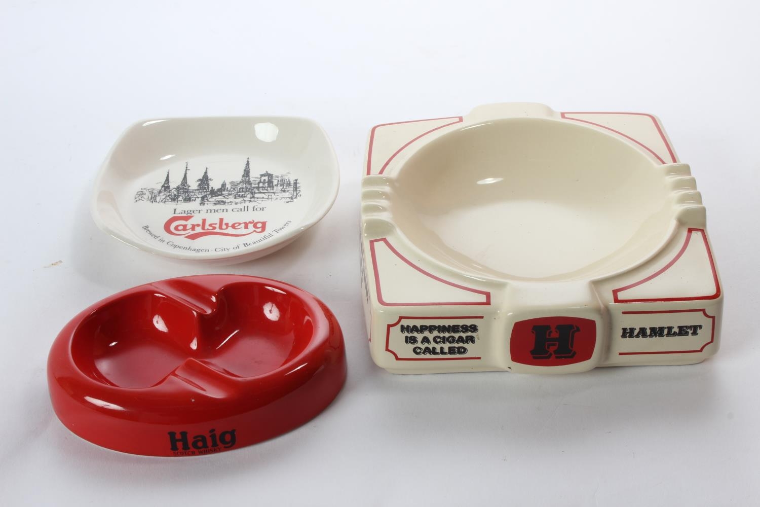 3 vintage pub advertising ashtrays, to include Haig Scotch Whisky, Carlsberg Lager & Hamlet Cigars.