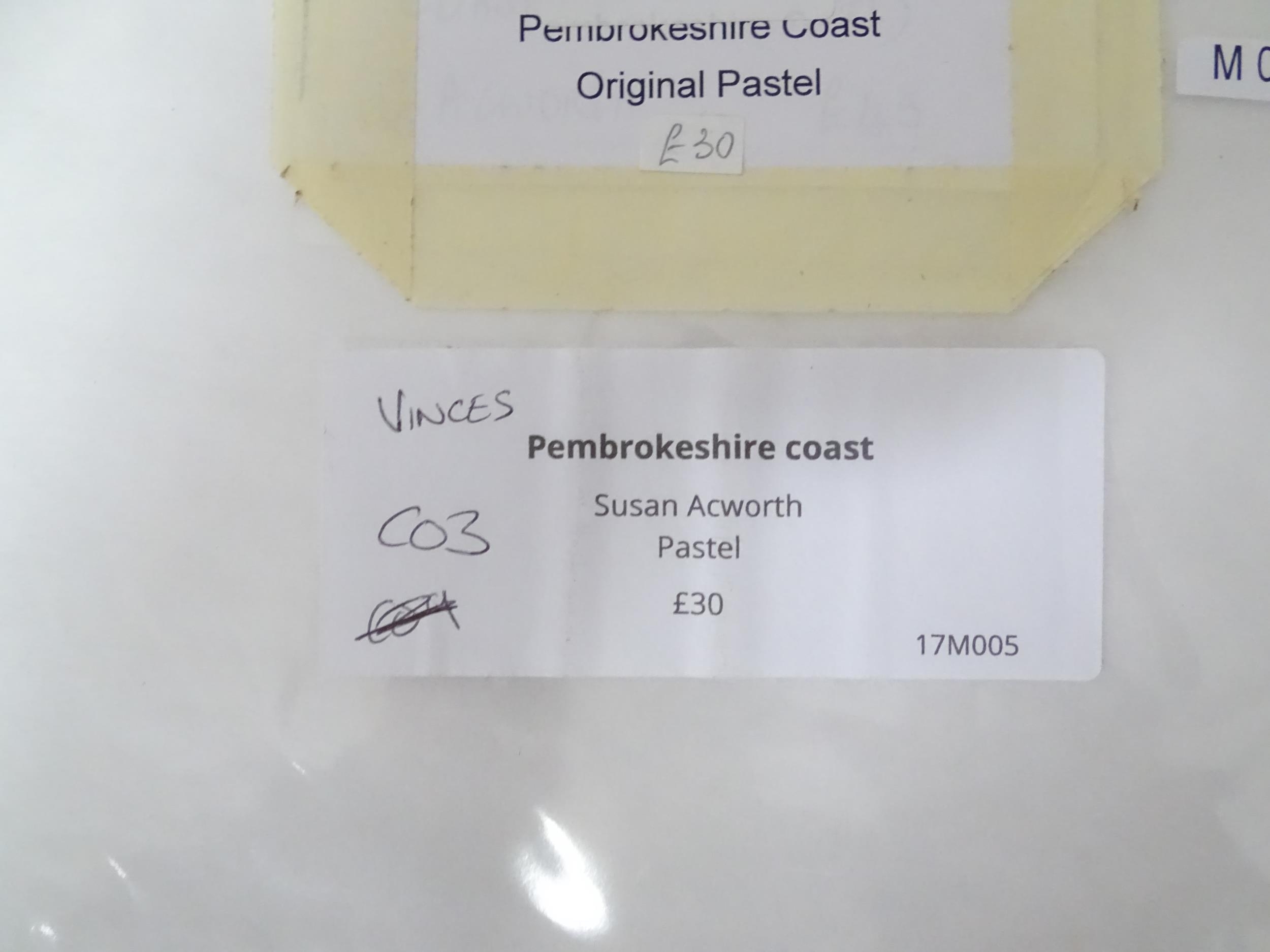 Susan Acworth, Pastels, Two landscape scenes comprising 'Pembrokeshire Coast', and 'Weeping Willow.' Each signed lower left and approx 14 1/4" x 11 1/4" (2)