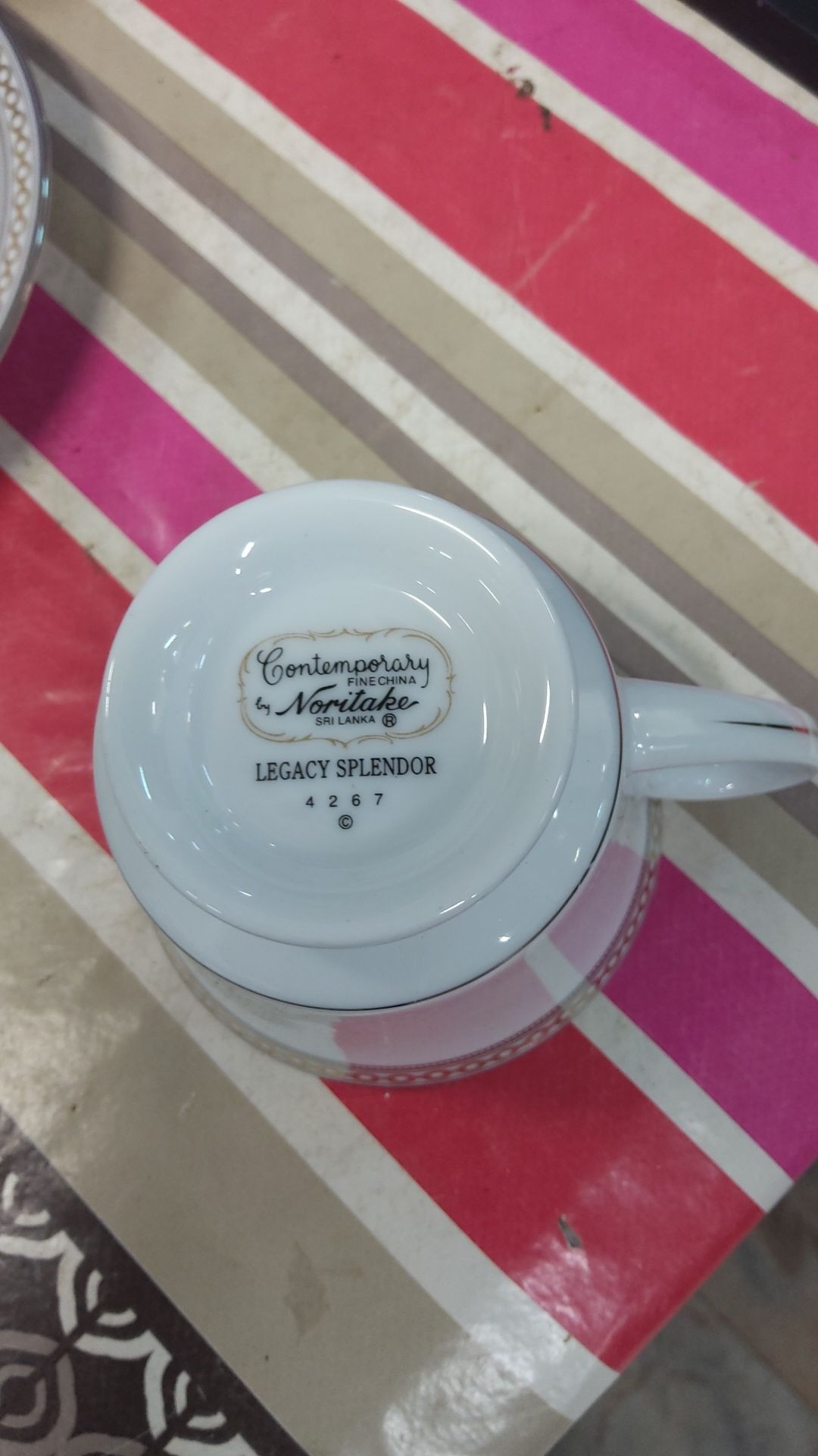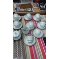 Noritake Legacy Splendor 18 pce tea set made of fine china features elegant detailing. Includes cups, saucers, creamer, and sugar bowl.