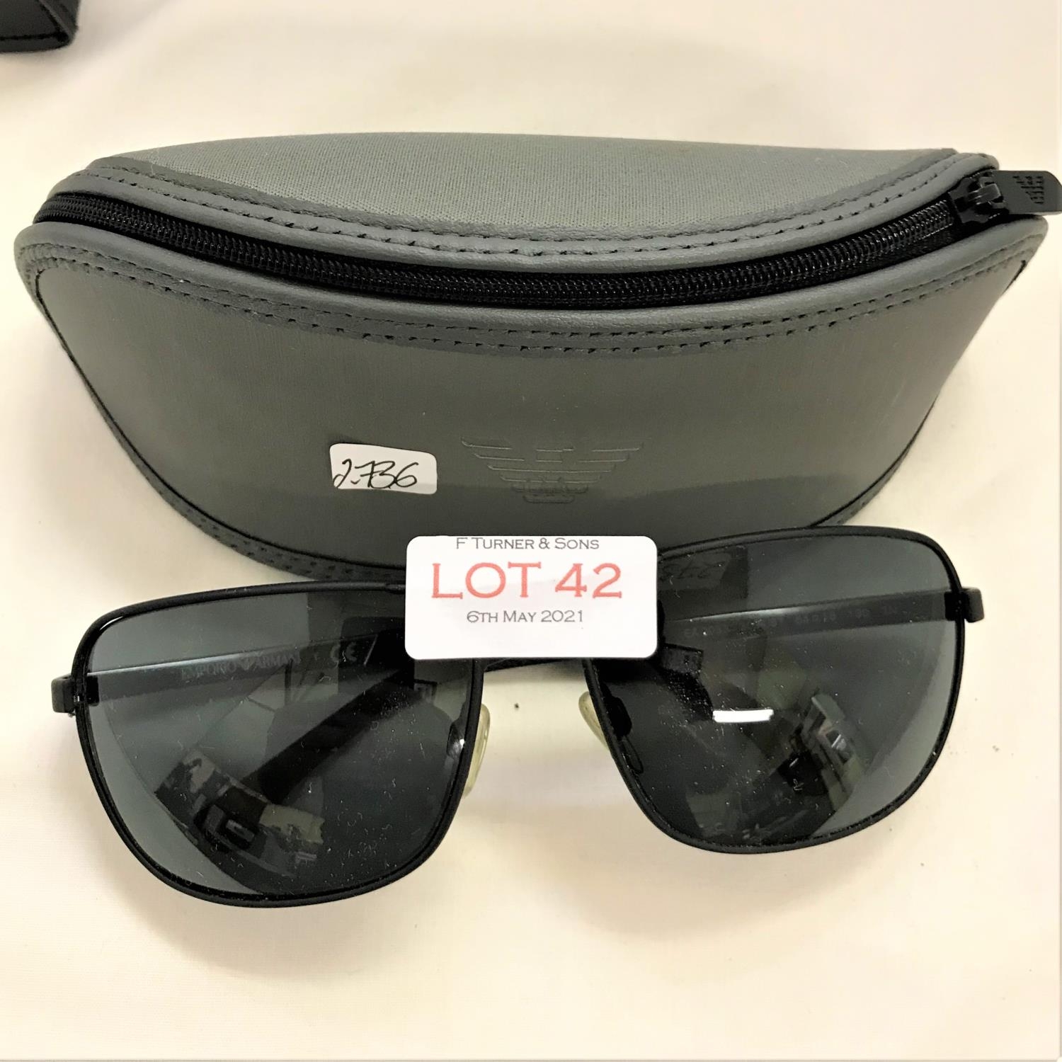 PAIR OF GENTS BLACK AVIATOR STYLE ARMANI SUNGLASSES WITH CASE-USED