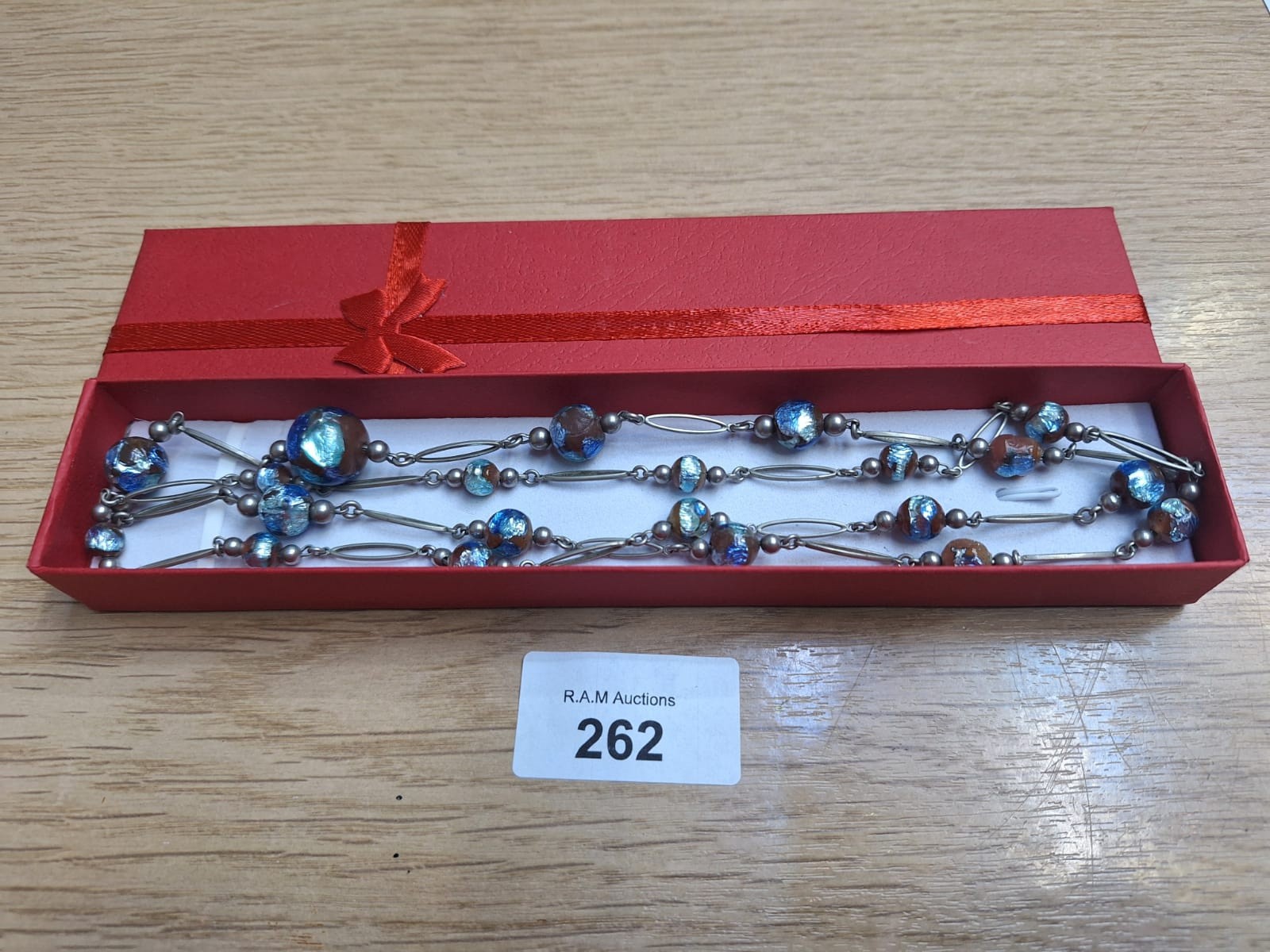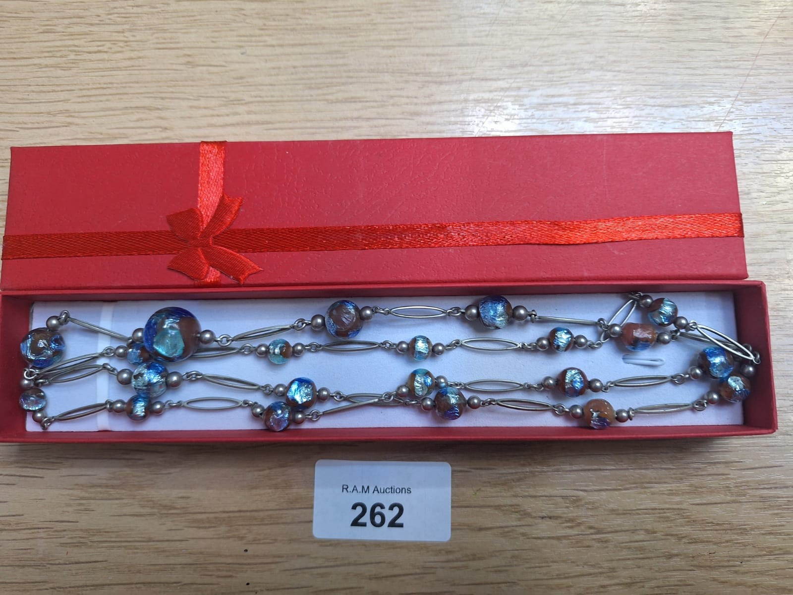 Boxed Silver and Glass Long Necklace