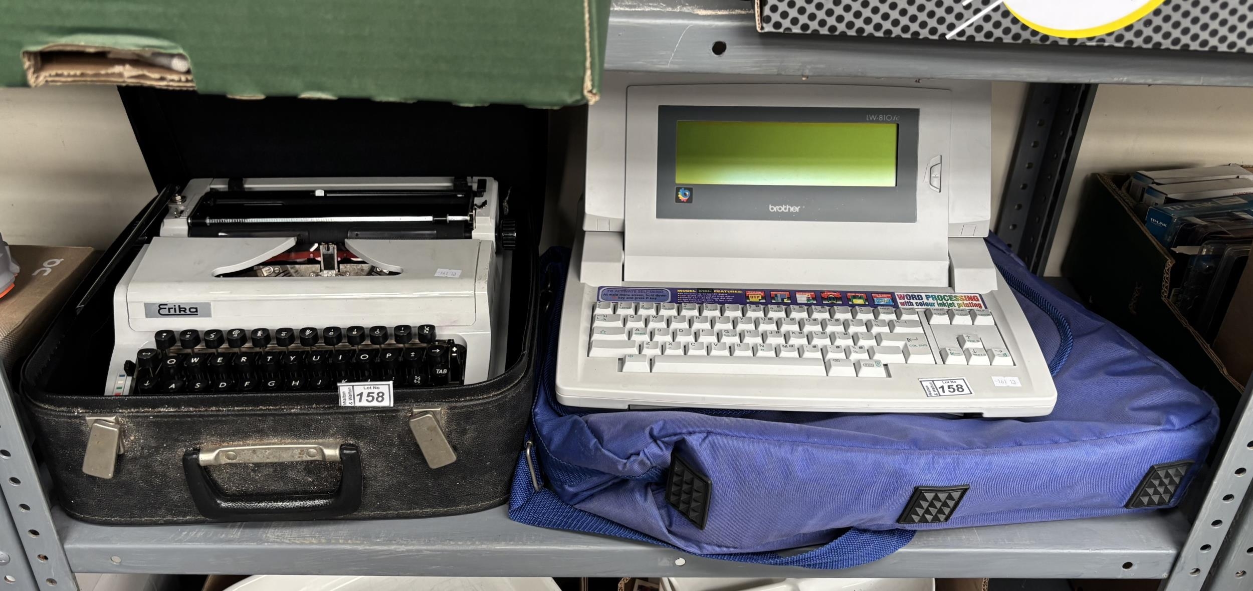 Vintage Erika typewriter and Brother word processor (LW-810)