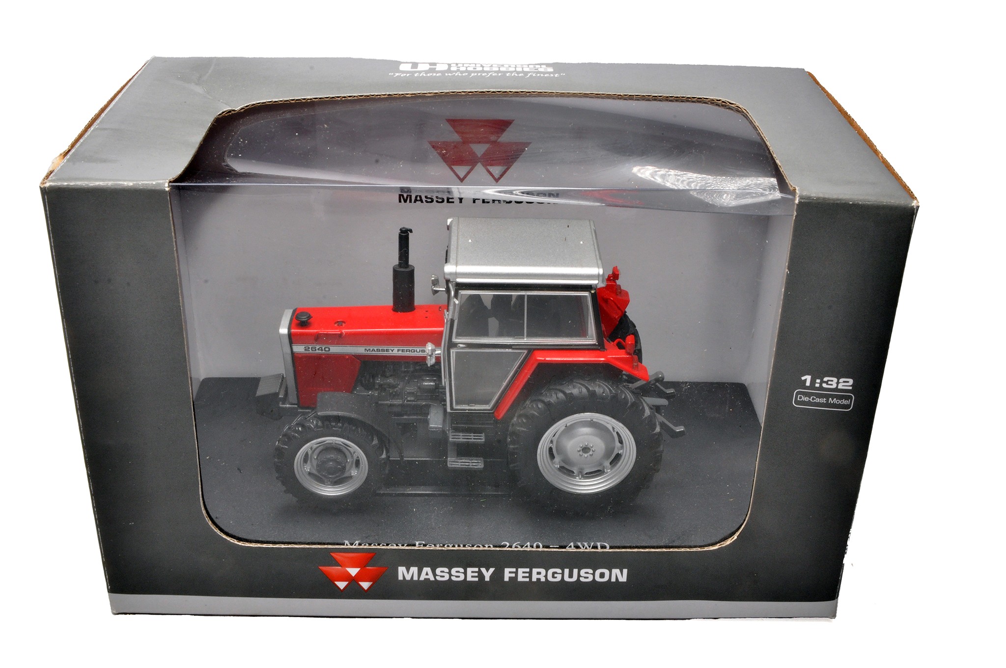 Universal Hobbies 1/32 farm model issue comprising Massey Ferguson 2640 - 4WD Tractor. Excellent and secure in unopened box (slight denting to one corner - top of box).