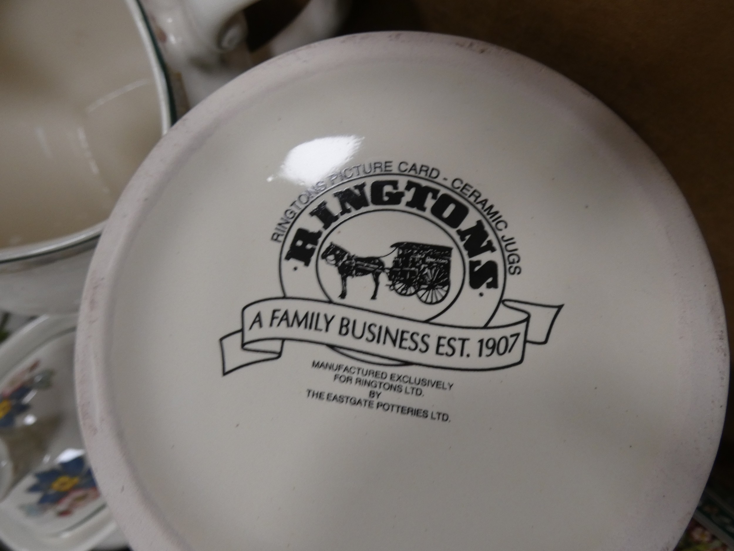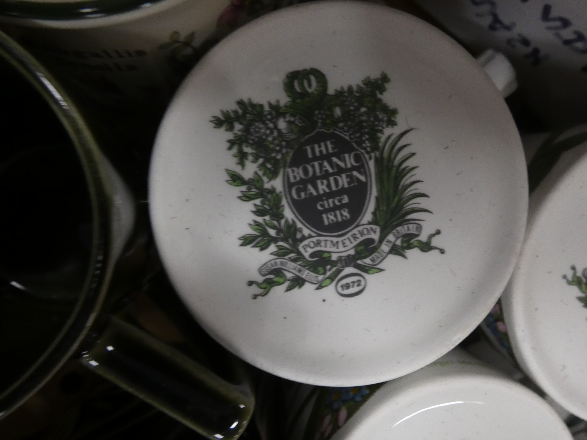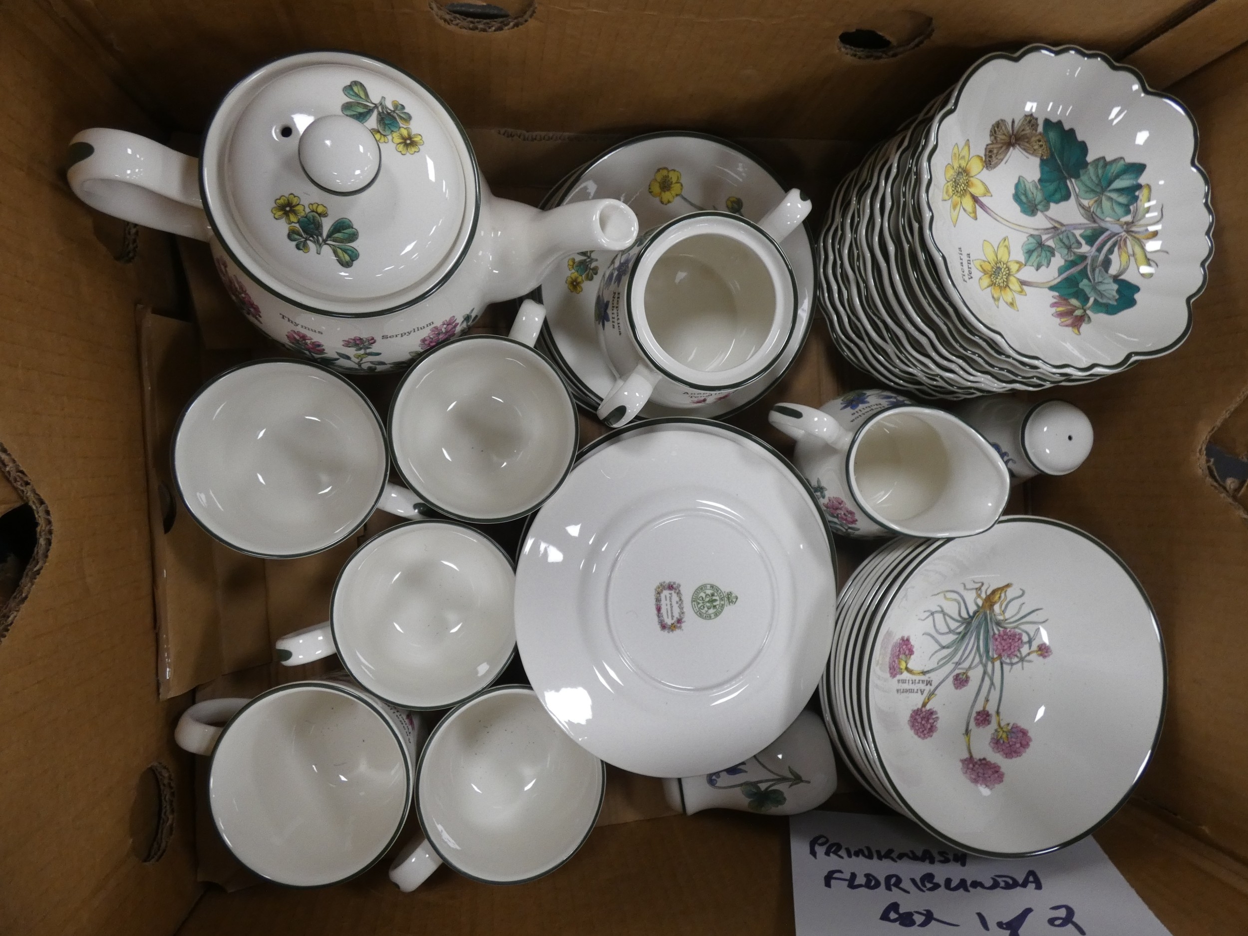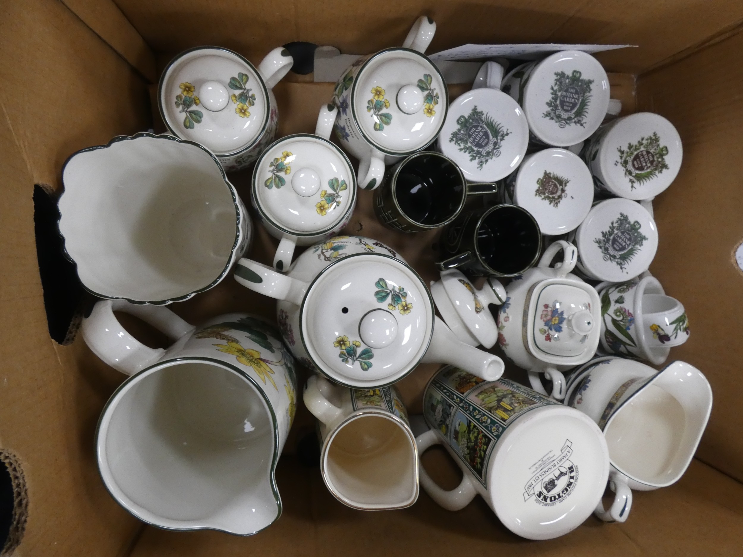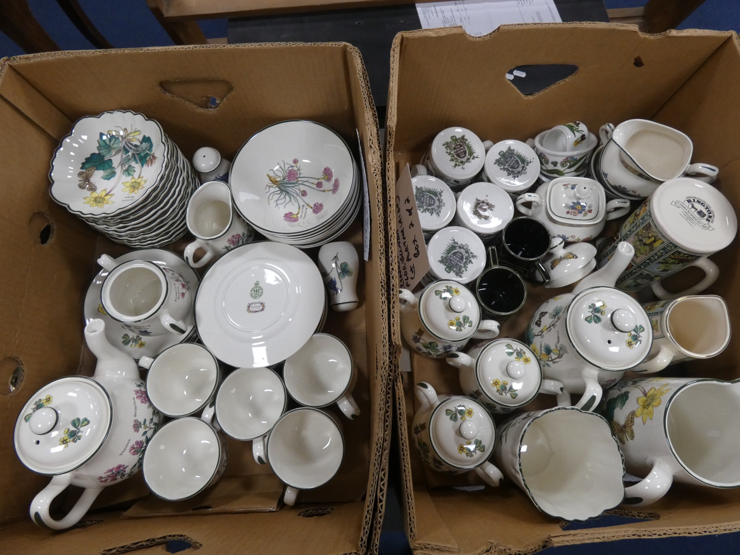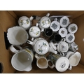 Two cartons containing Portmeirion china tea and dinnerwares to include 'Florabunda' and 'Botanic Gardens', also a Rington's jug etc.
