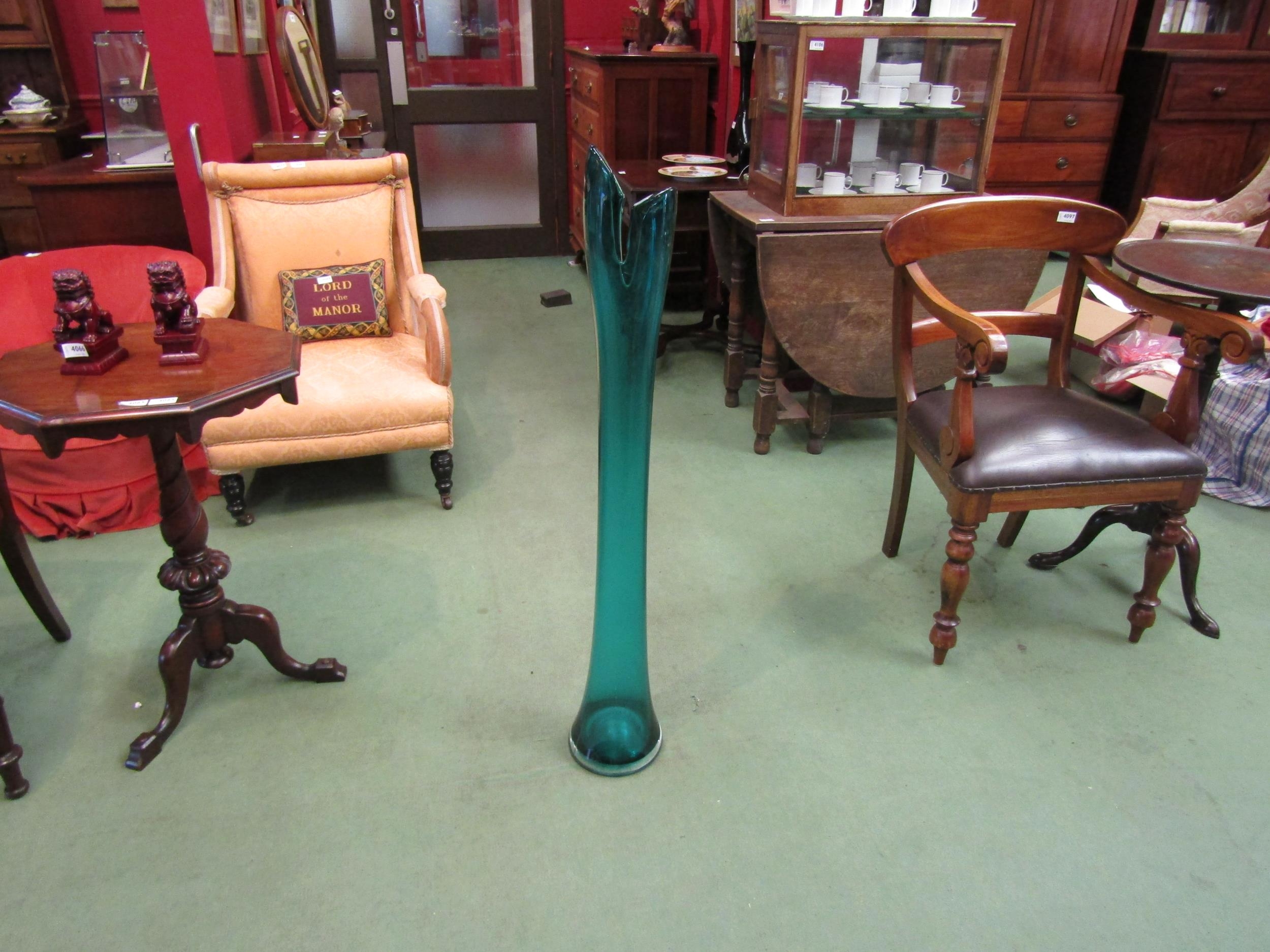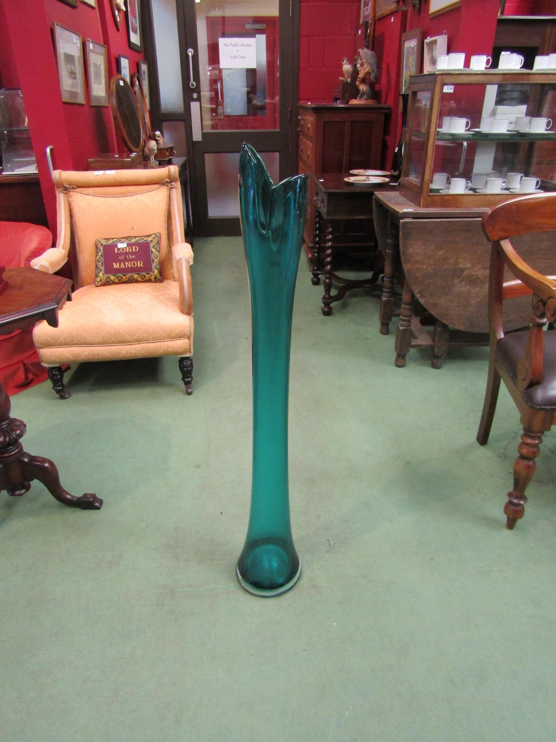 A green Polish Studio Art glass elongated vase, 108cm at tallest point