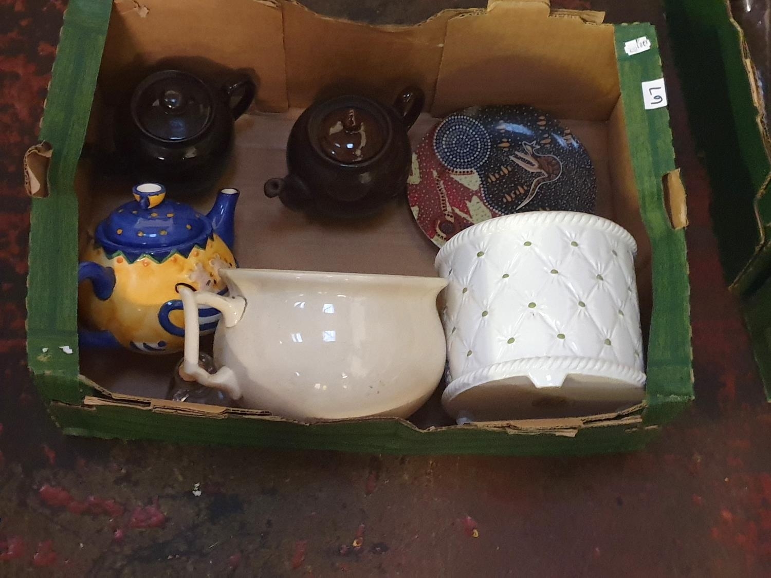 Box of Assorted China to Include Jardinieres, Teapots etc.