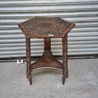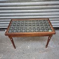 Wooden coffee table inlaid with 50 commemorative coins.