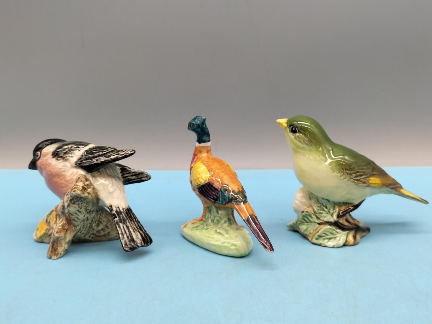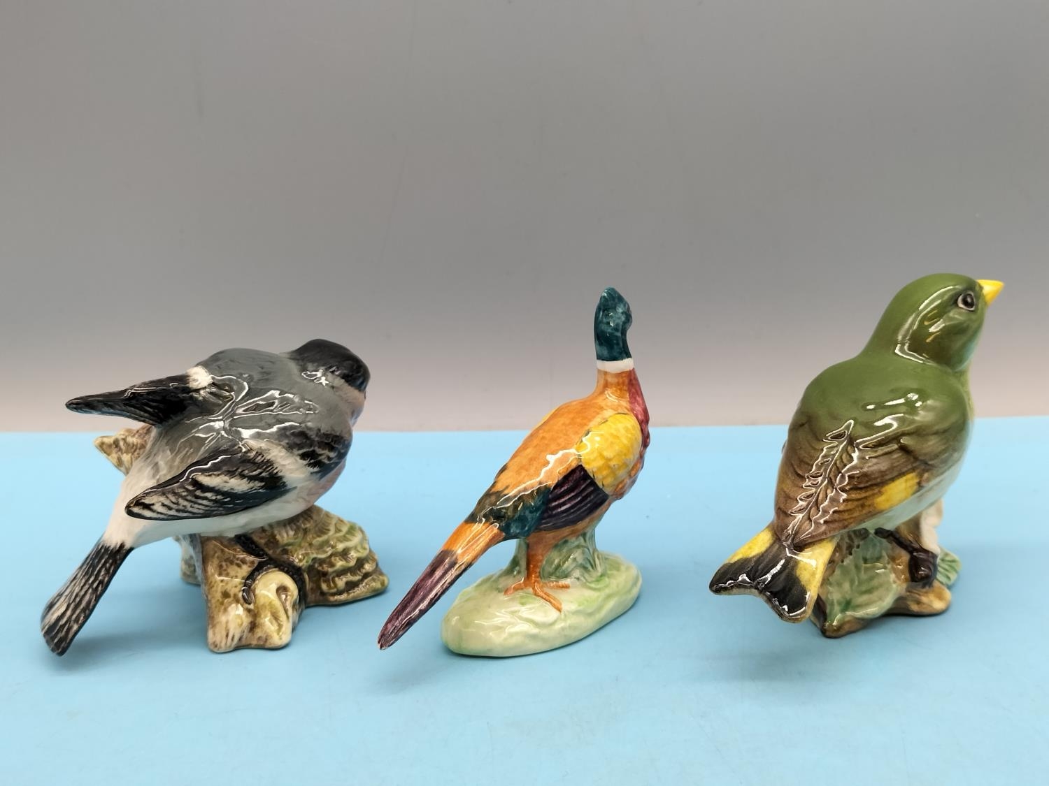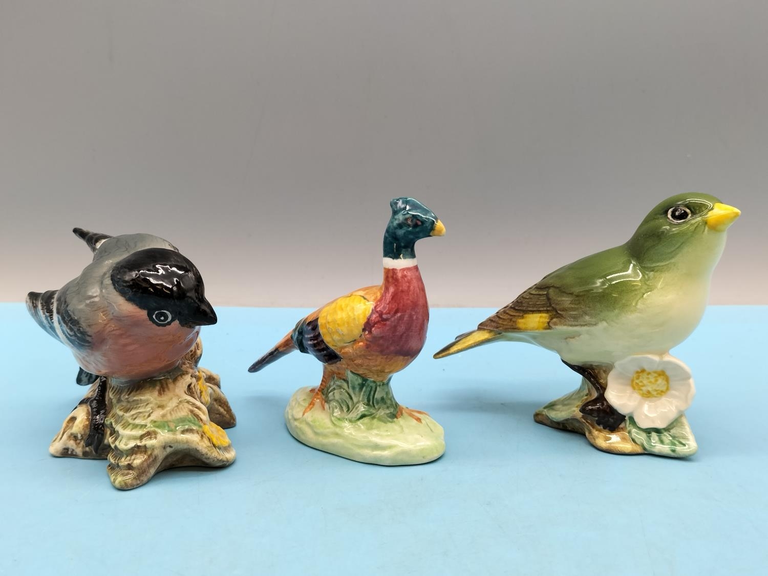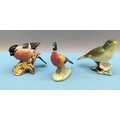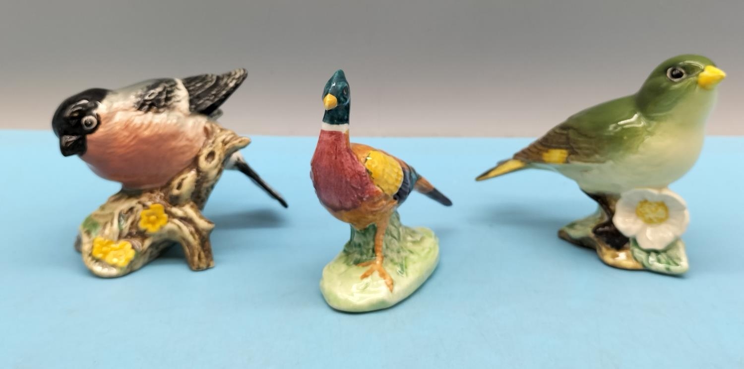 Beswick Bird Figures (3) to include Greenfinch 2105, Bullfinch 1042 and Unmarked Pheasant. Tallest 7cm.
