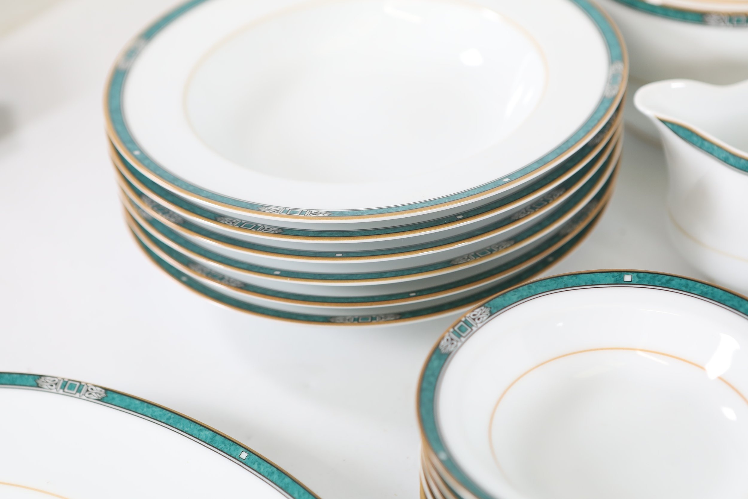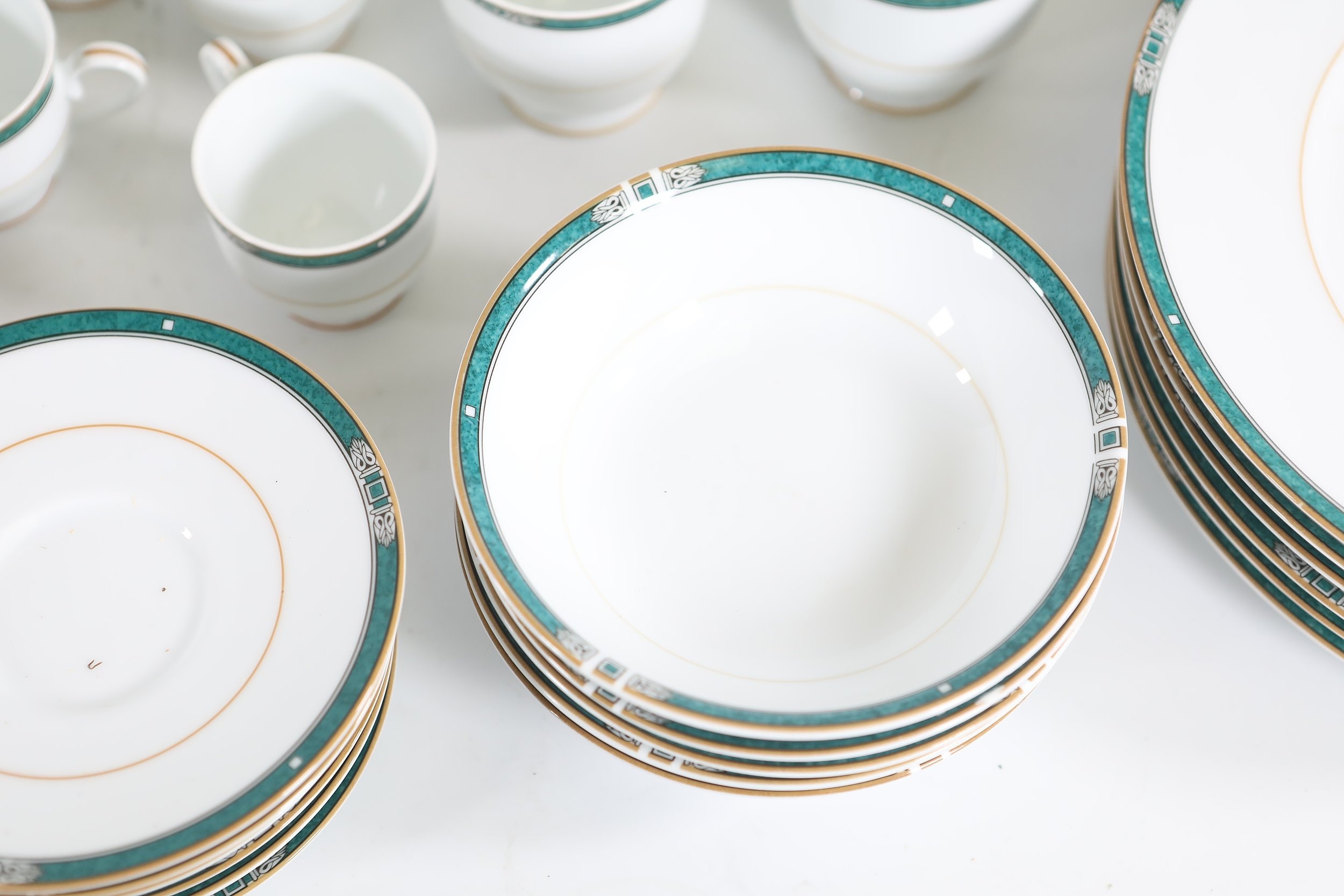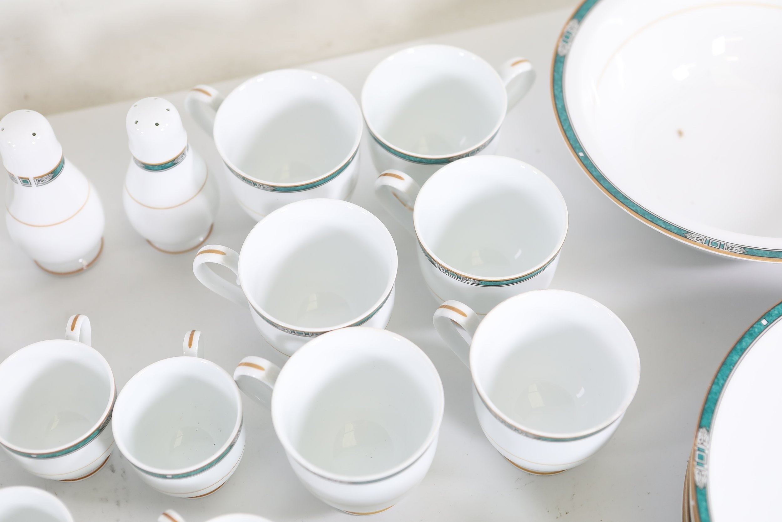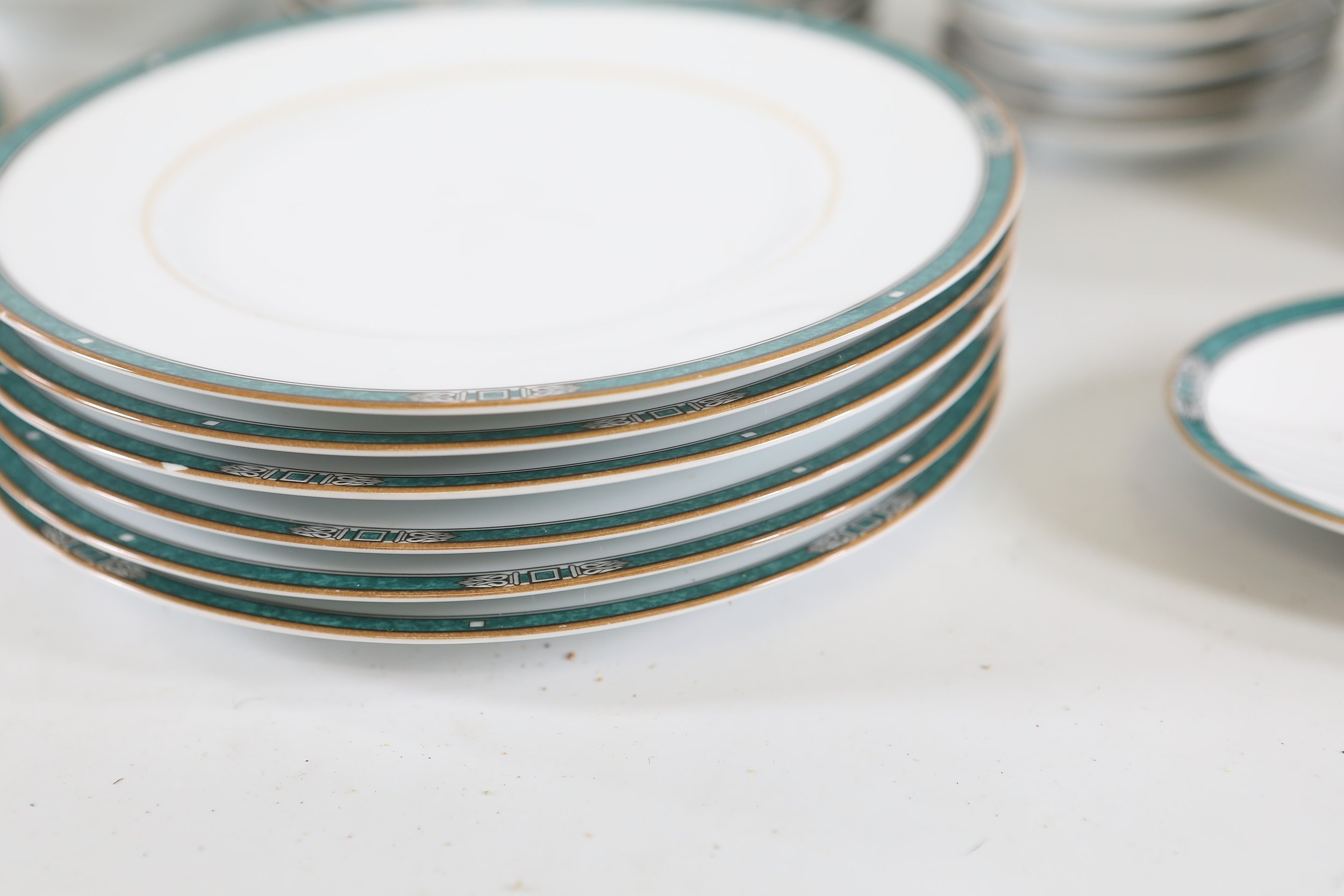 Noritake green bordered porcelain dinner service for six, 60 plus pieces