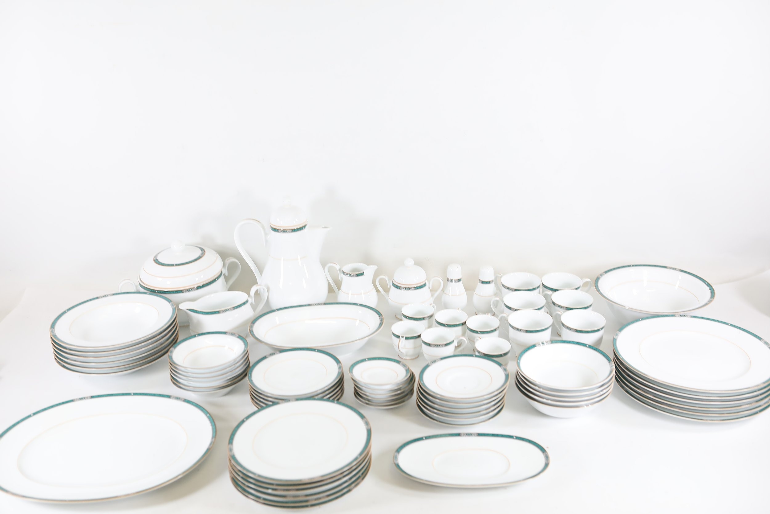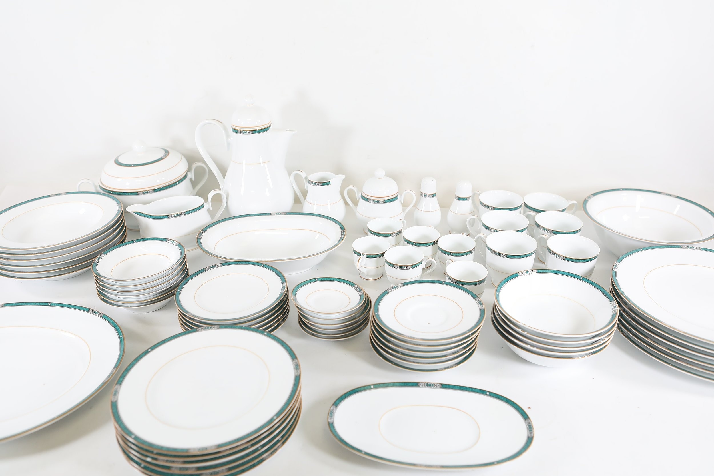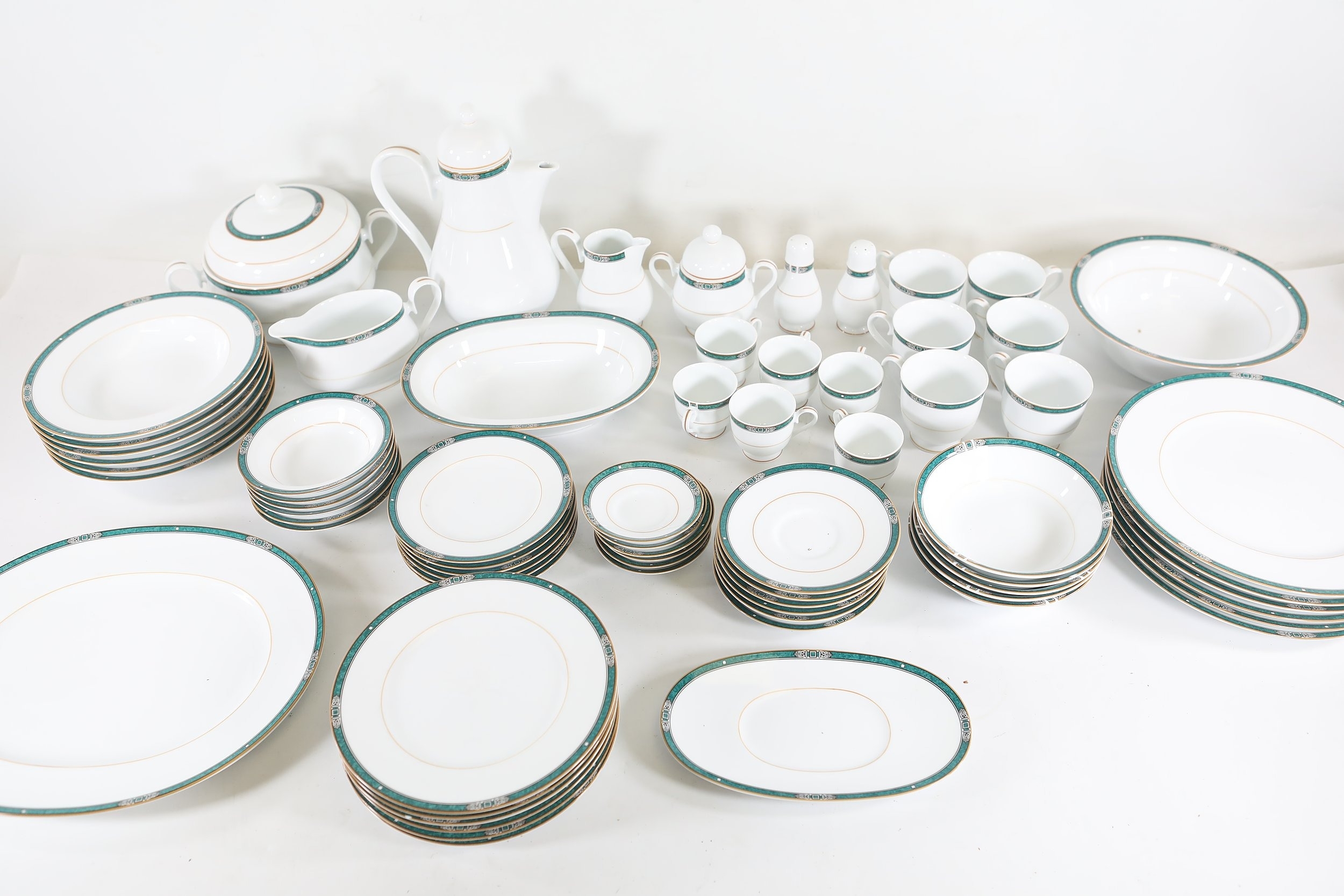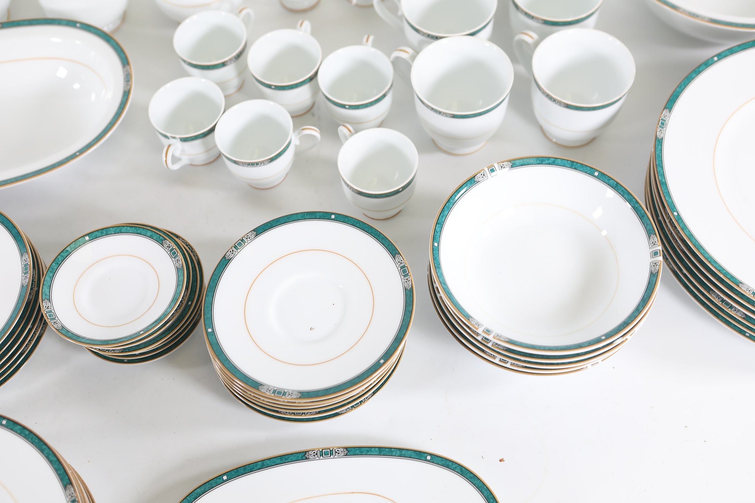 Noritake green bordered porcelain dinner service for six, 60 plus pieces