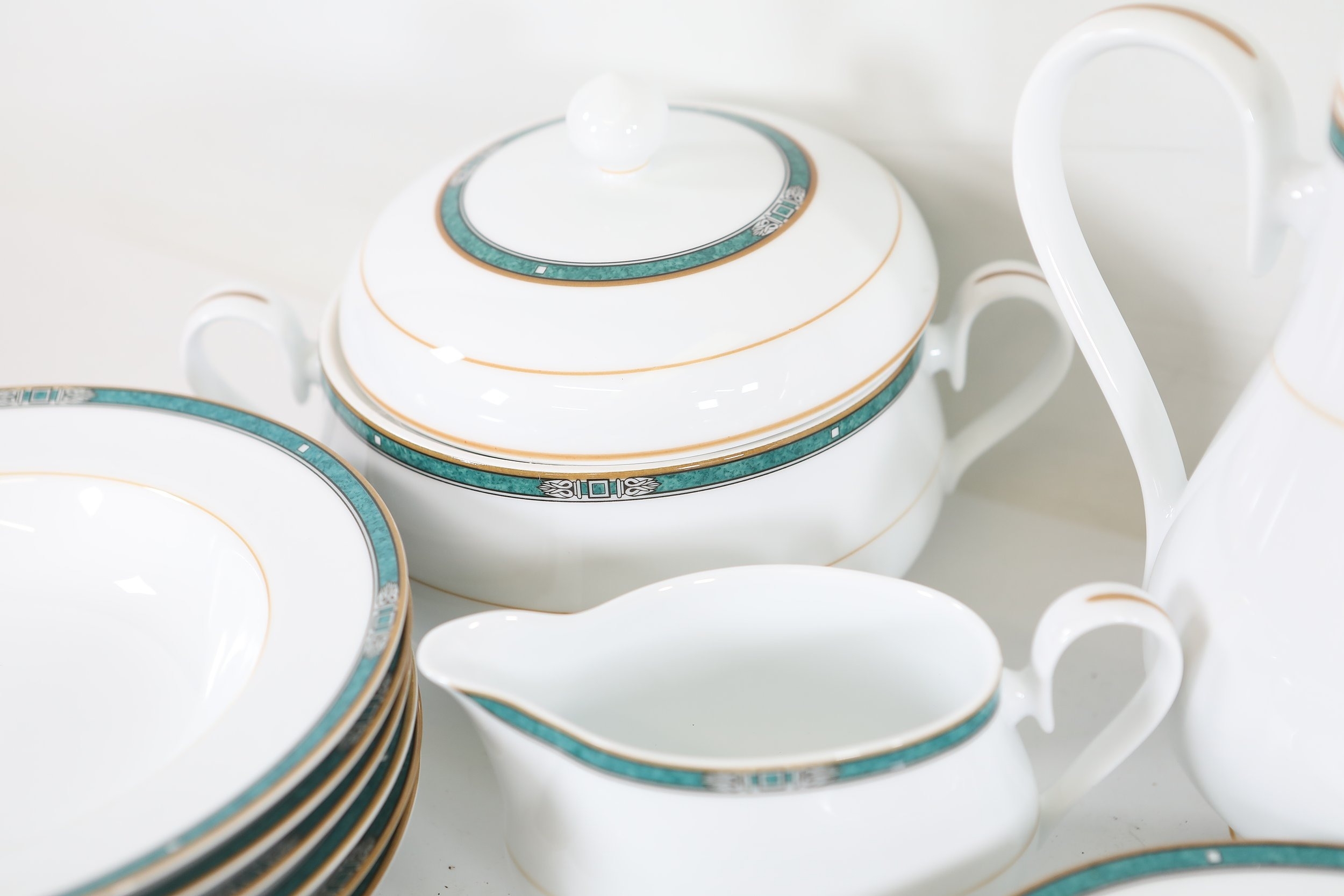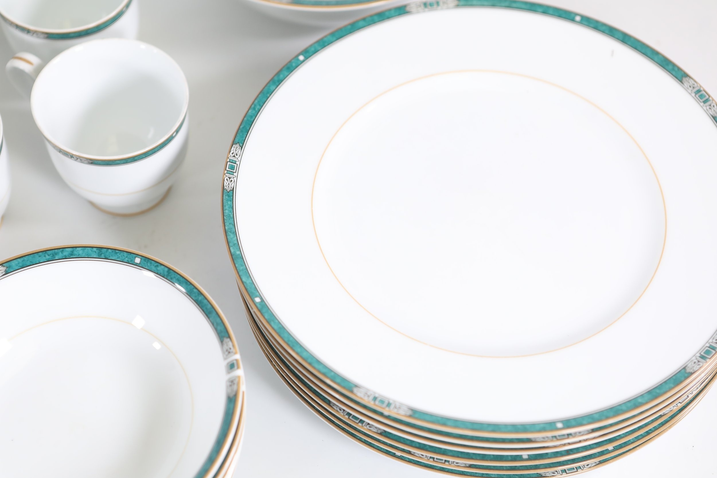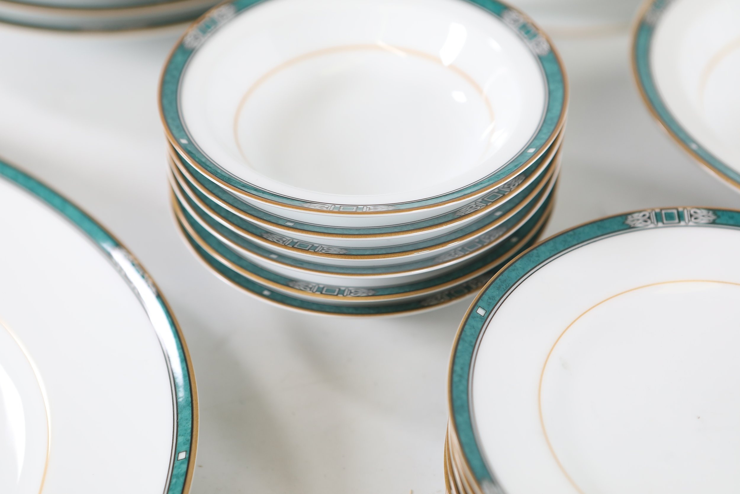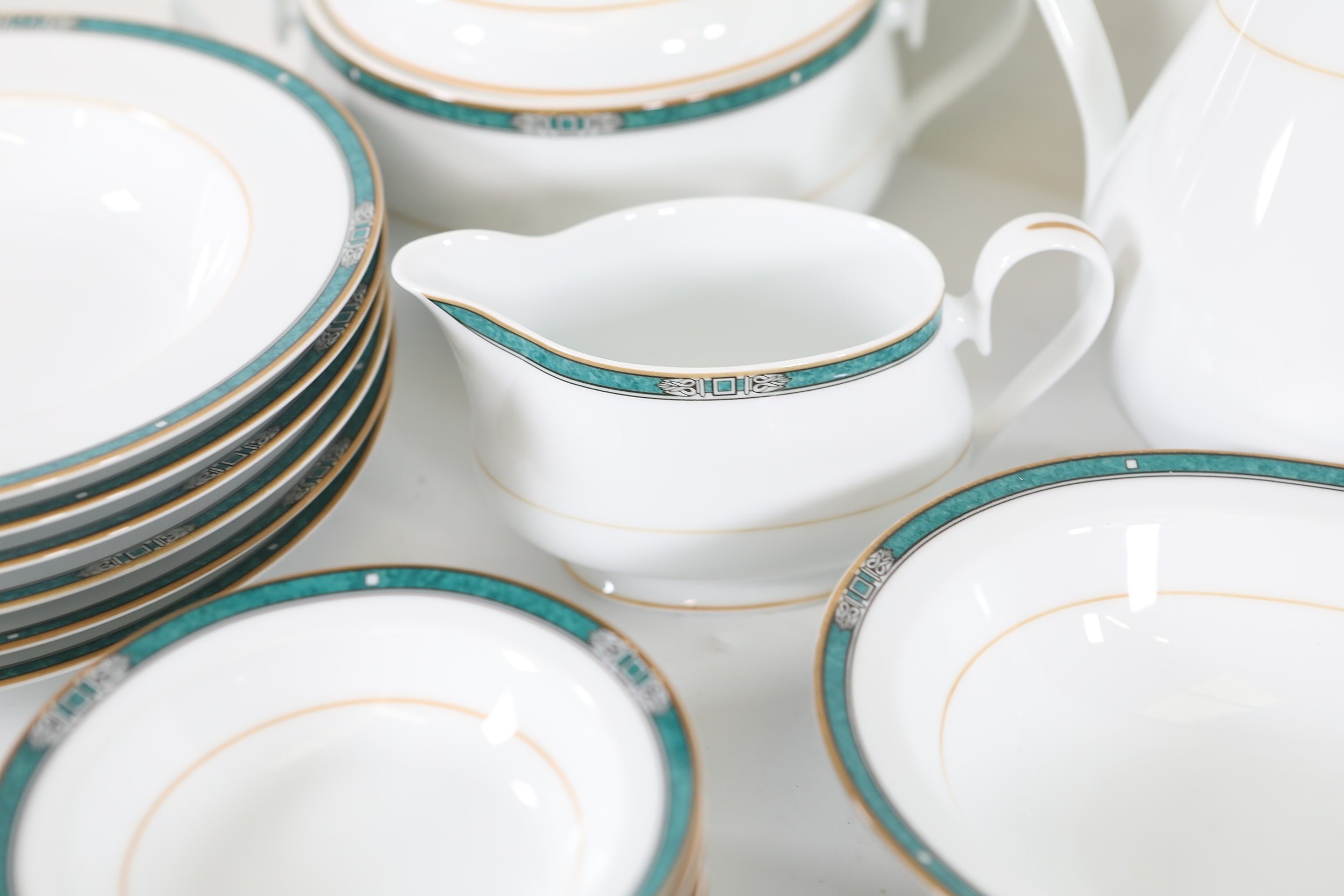 Noritake green bordered porcelain dinner service for six, 60 plus pieces