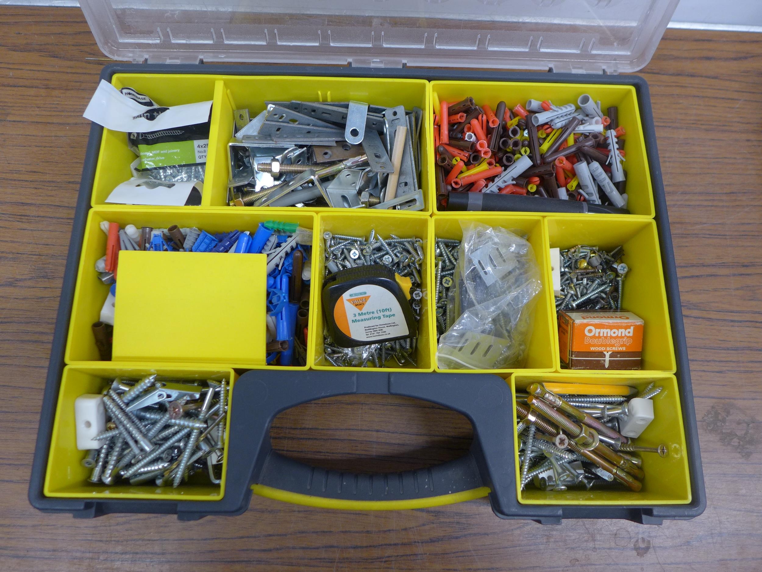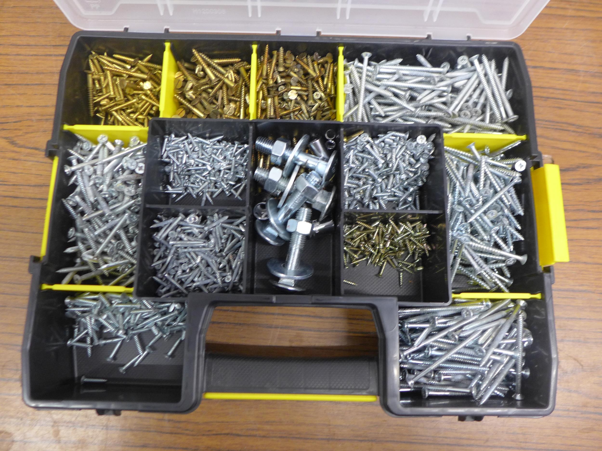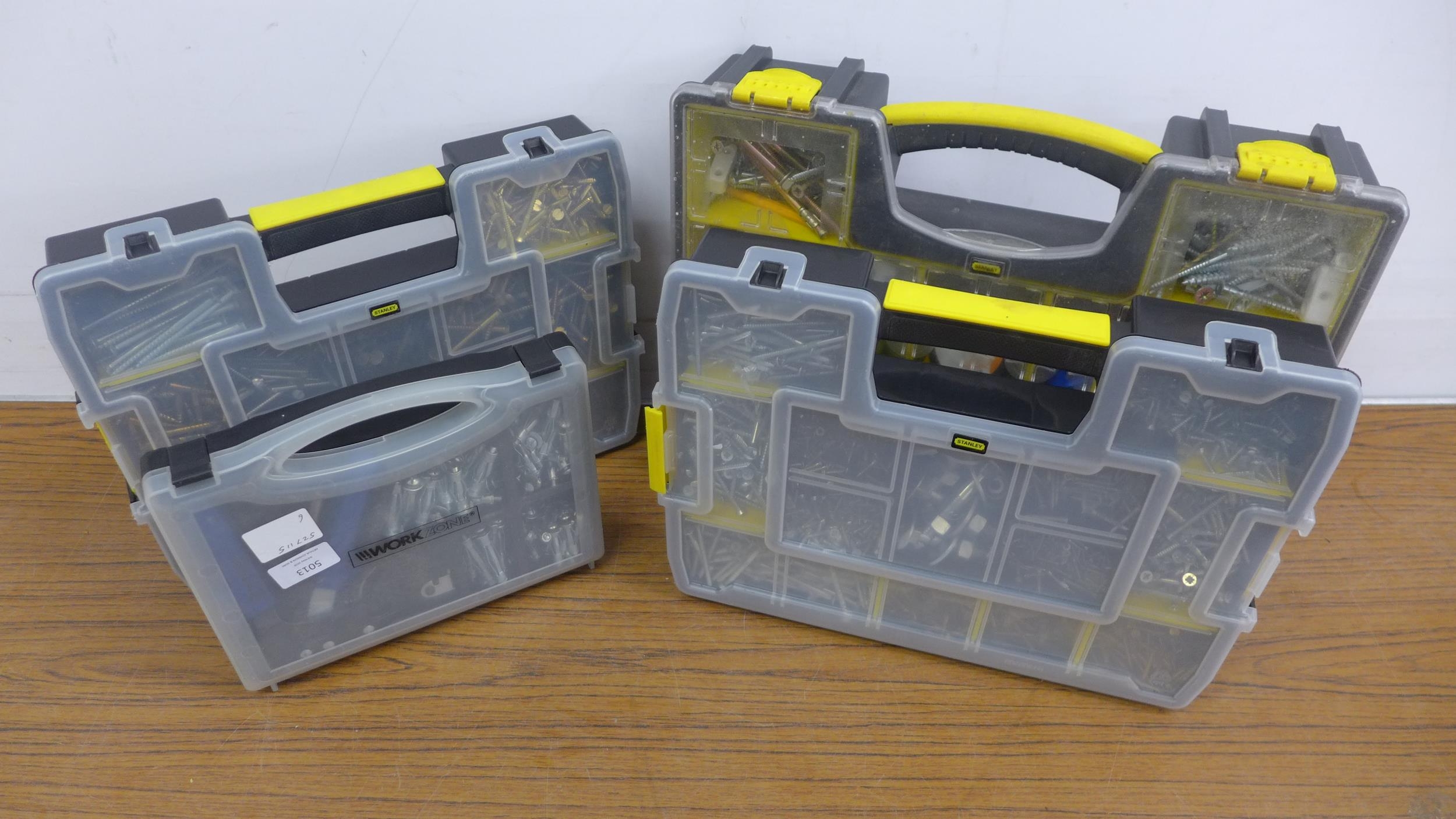 4 organiser bin trays containing a large quantity of assorted DIY consumables