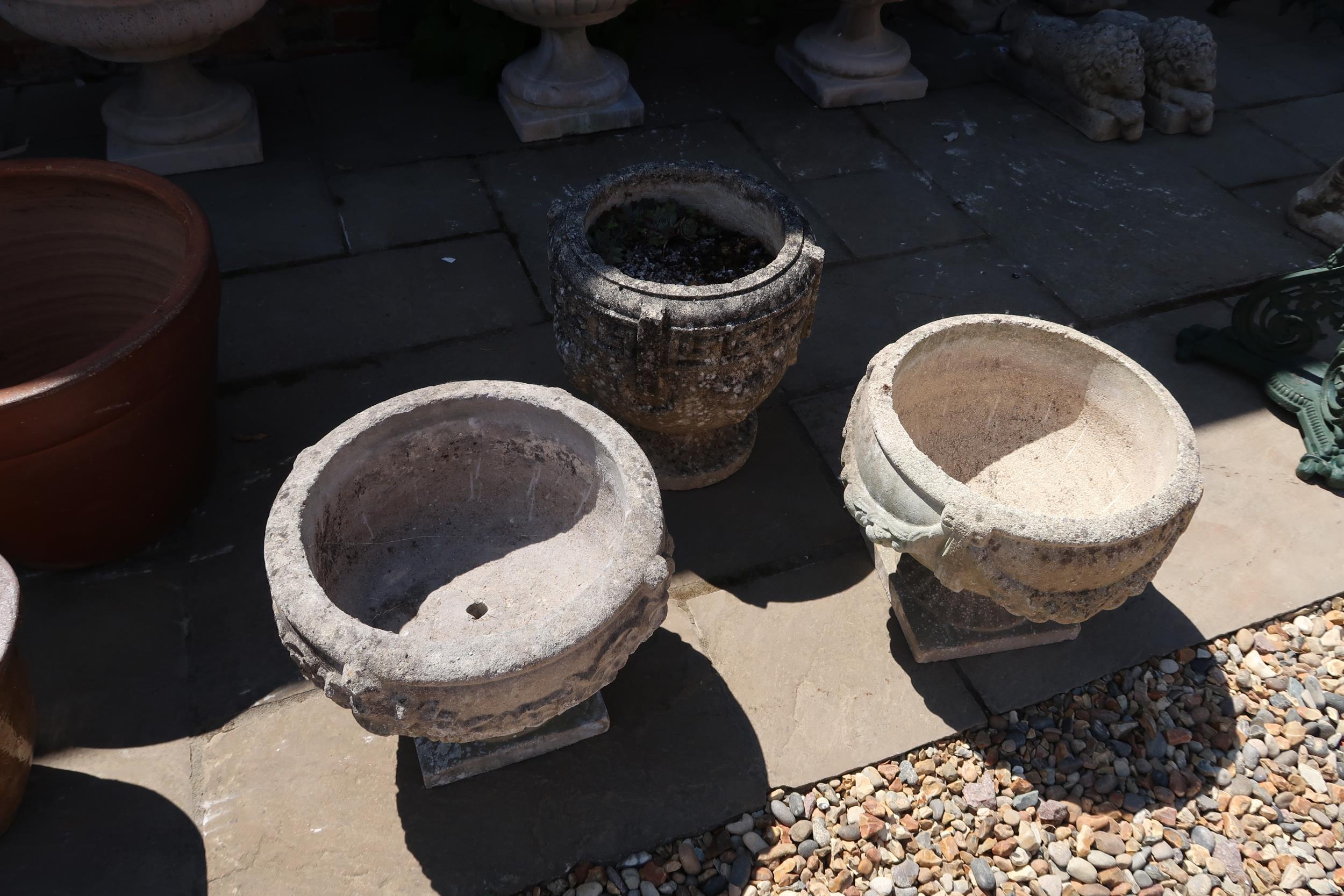 A pair of garden planters and one other