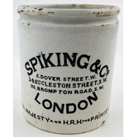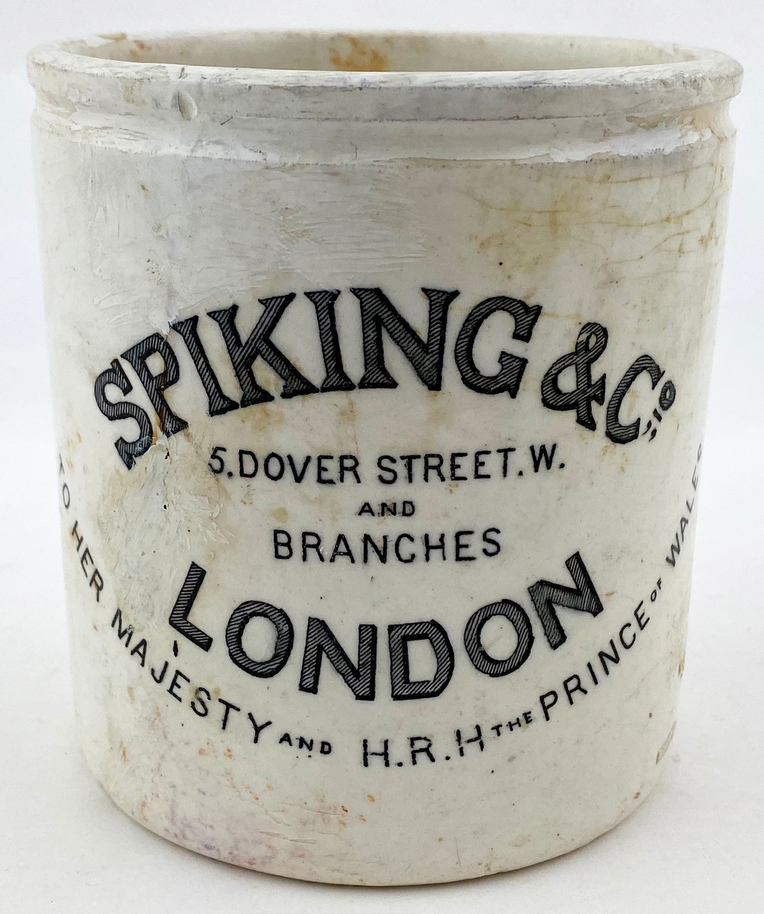 SPIKING & CO JAR JAR. 6 lined transfer with address as 5 Dover St âand branches.â Maling made. Some dirt otherwise sound.
