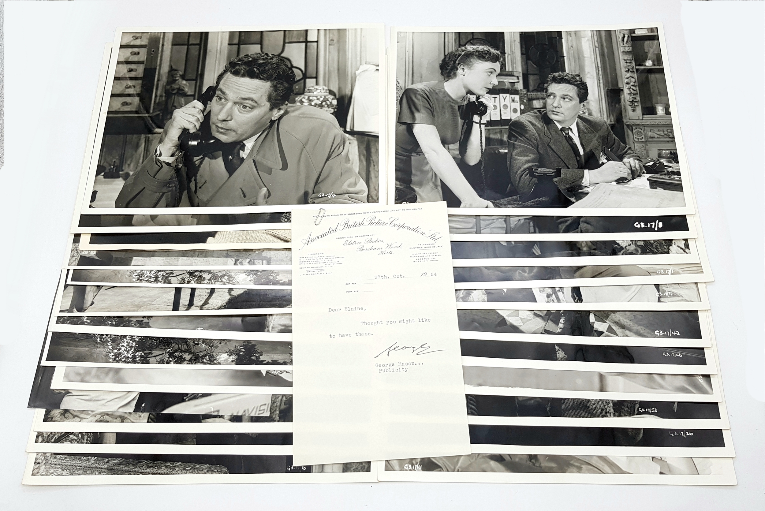 A Wonderful, Rare Collection of Acclaimed Academy Award Winning Actor, Peter Finch, Black and White Photographs. Peter Finch (1916-1977) won a posthumous academy award for his work in the movie 'Network'. Most of the photos are from his roles in the 1940s and 50s. Some rare shots indeed.